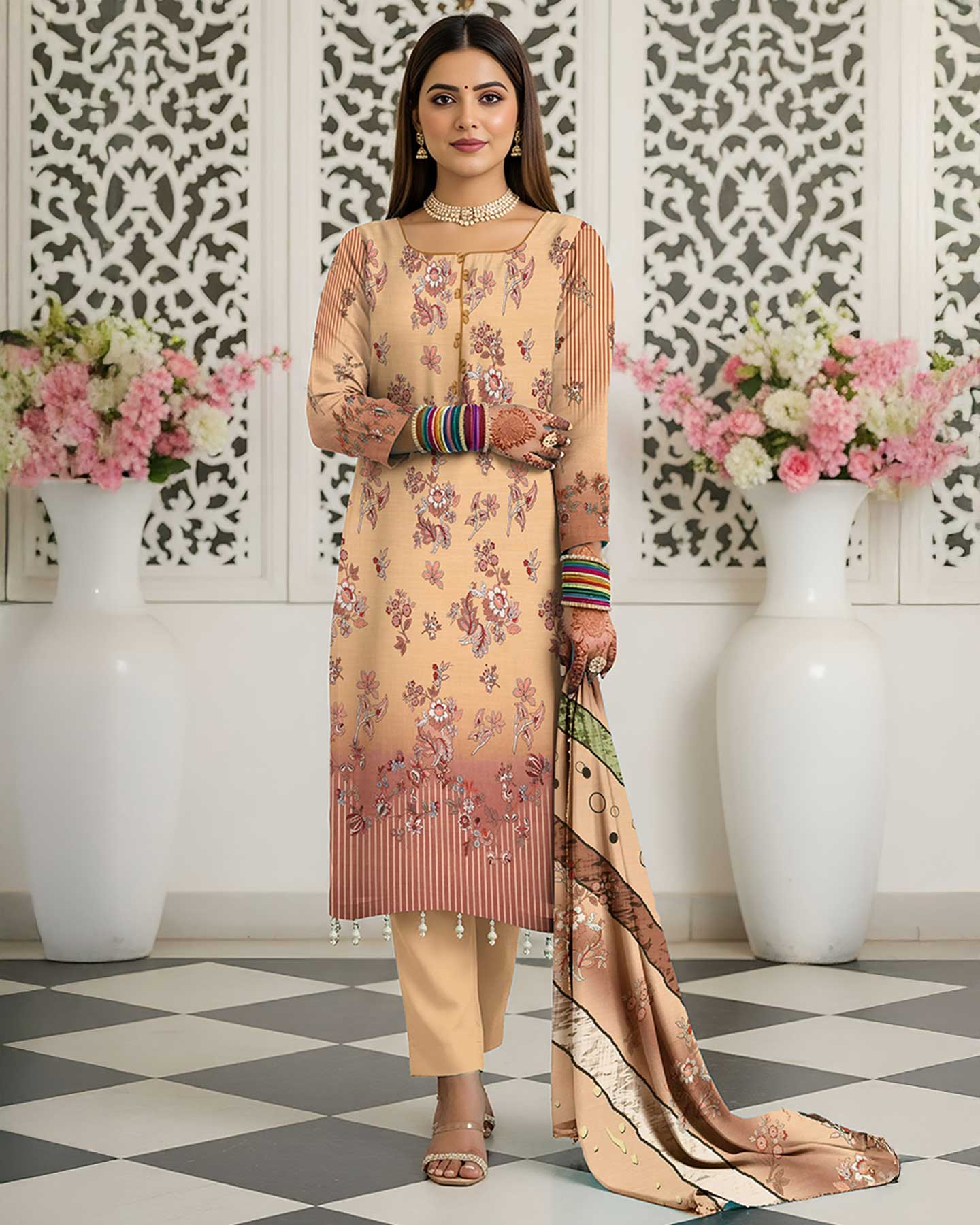 Note : Embroidery shirt have been styled in the image for photography and illustrative purposes. The standard style comes as a long sleeved kameez.