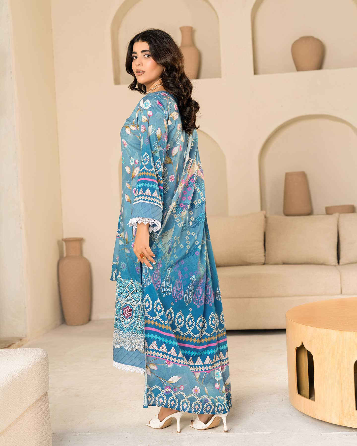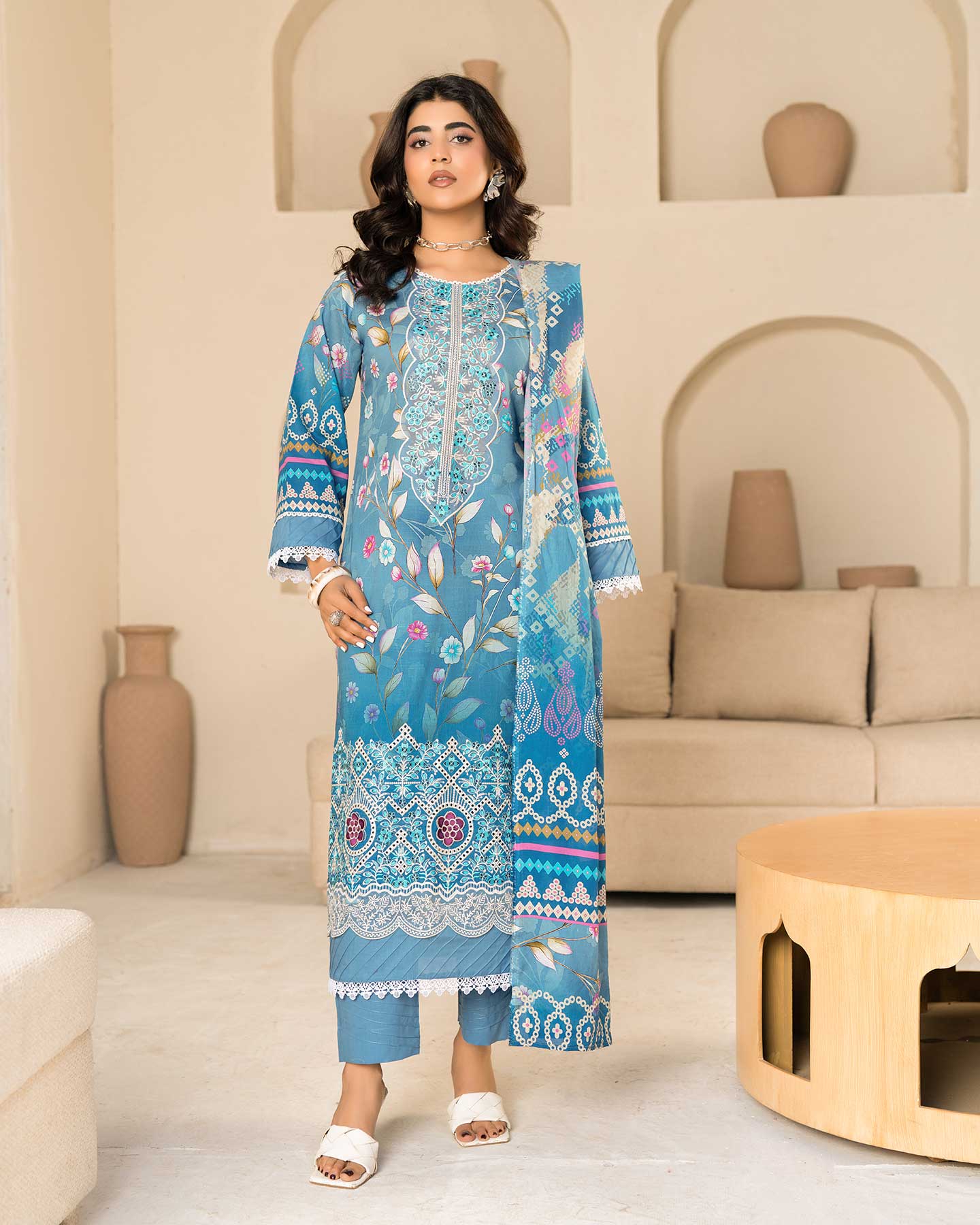 - PREMIUM 3D FLOWER EMBROIDERED LAWN SLUB DIGITAL PRINT SHIRT