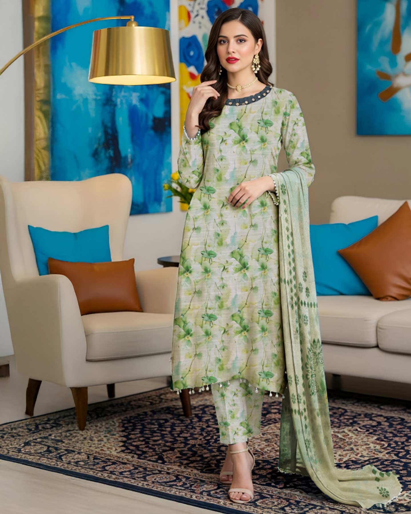 Note : Embroidery shirt have been styled in the image for photography and illustrative purposes. The standard style comes as a long sleeved kameez.