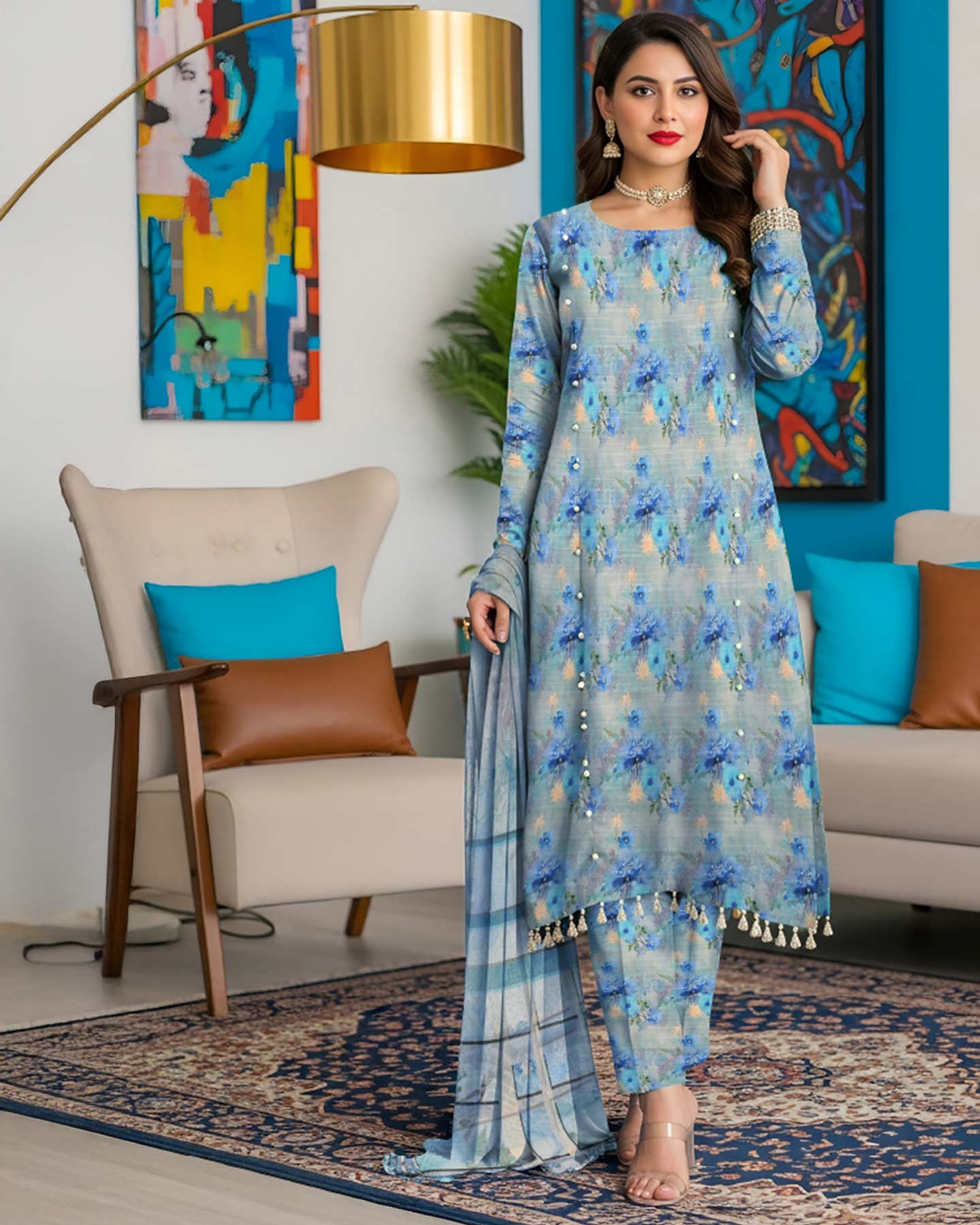 Note : Embroidery shirt have been styled in the image for photography and illustrative purposes. The standard style comes as a long sleeved kameez.