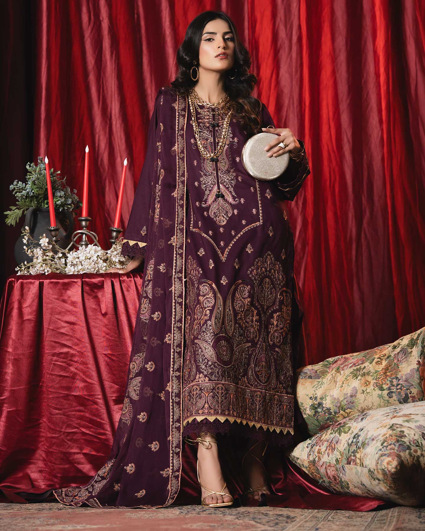 - LUXURY CRINKLE EMBROIDERED LACE DUPATTA