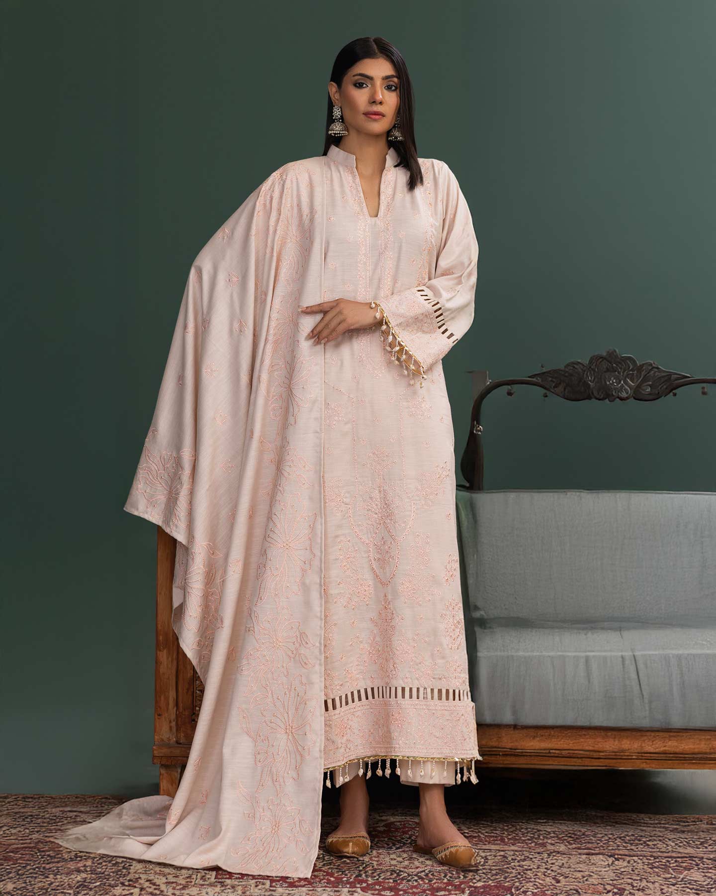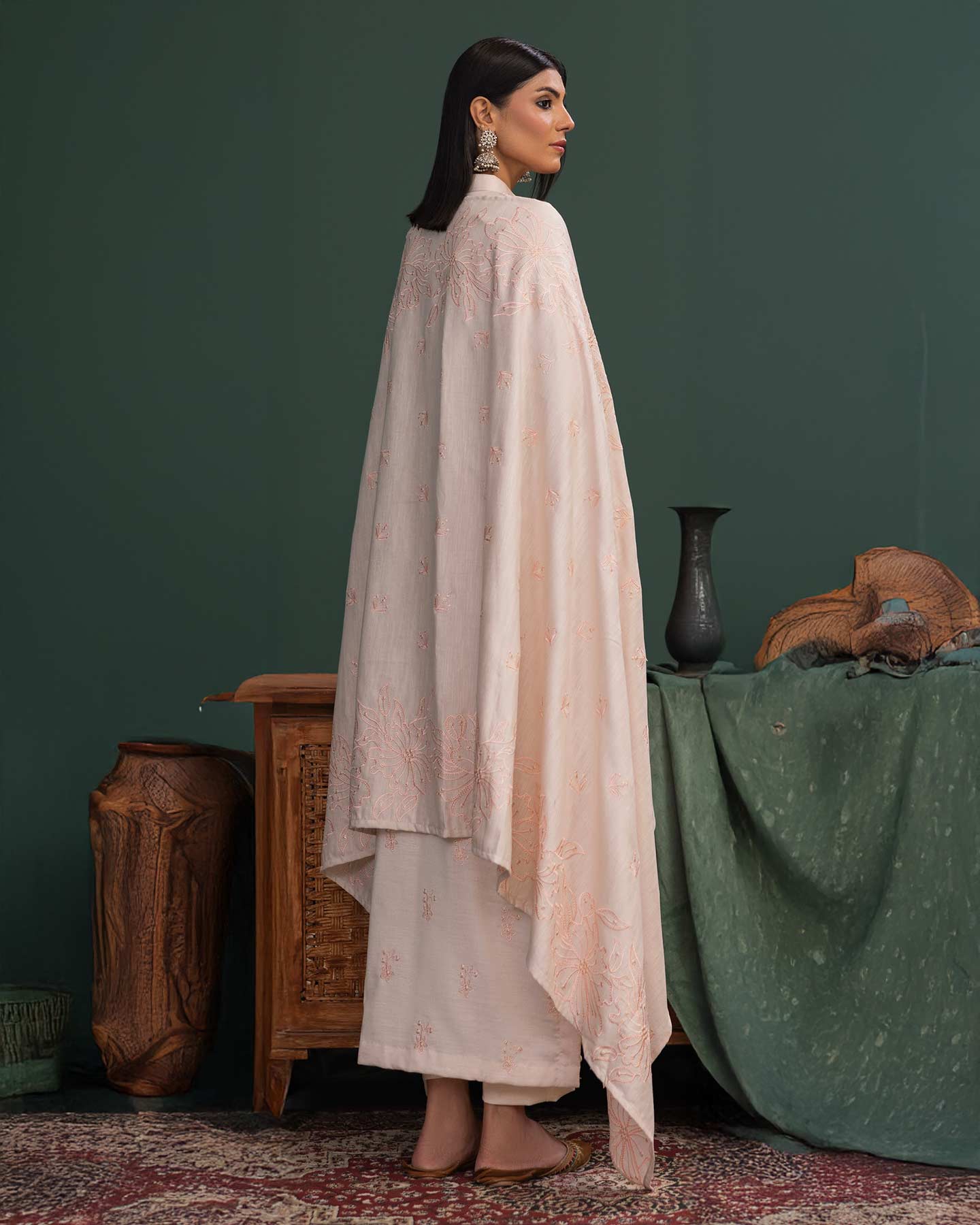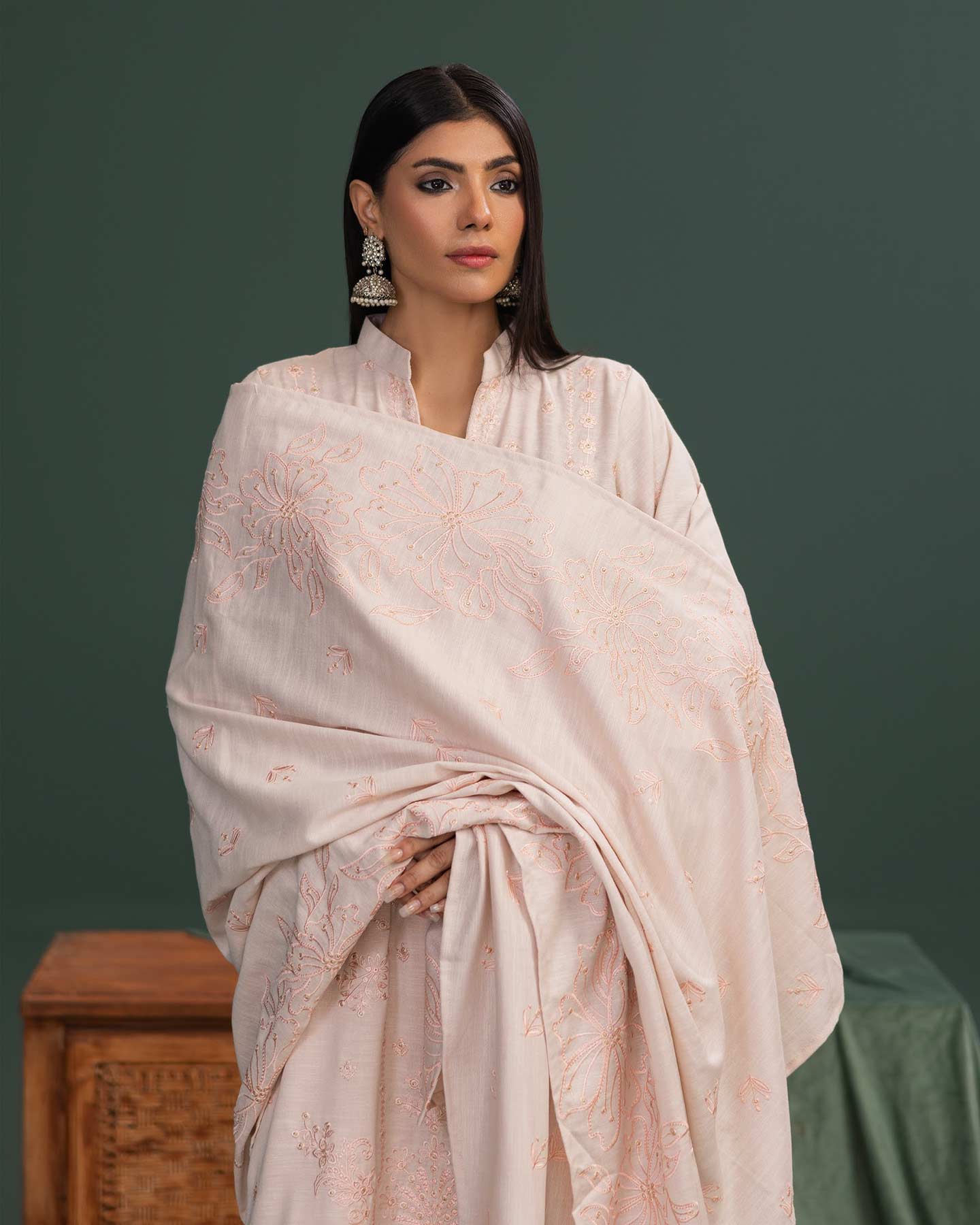 - ELEGANT STYLE EMBROIDERED PEACH SLUB SHIRT