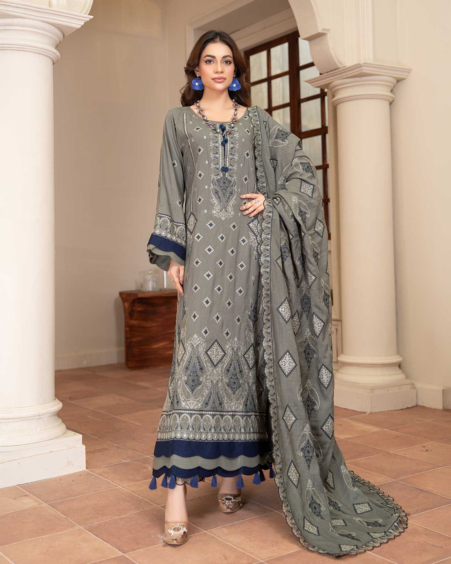 Note : Embroidery shirt have been styled in the image for photography and illustrative purposes. The standard style comes as a long sleeved kameez.
