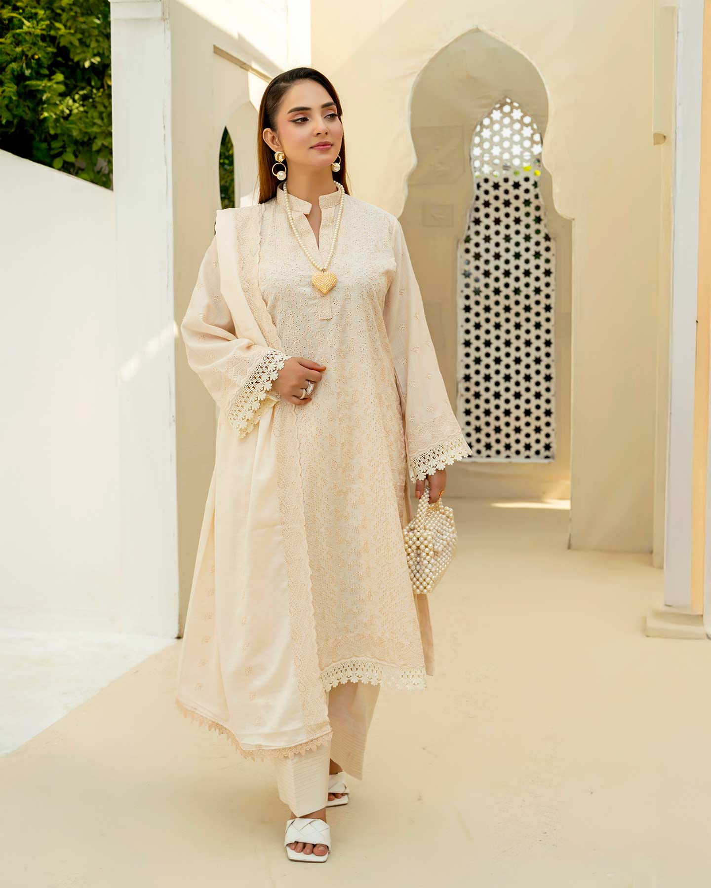• Premium Embroidered Fancy Slub Karandi Shirt