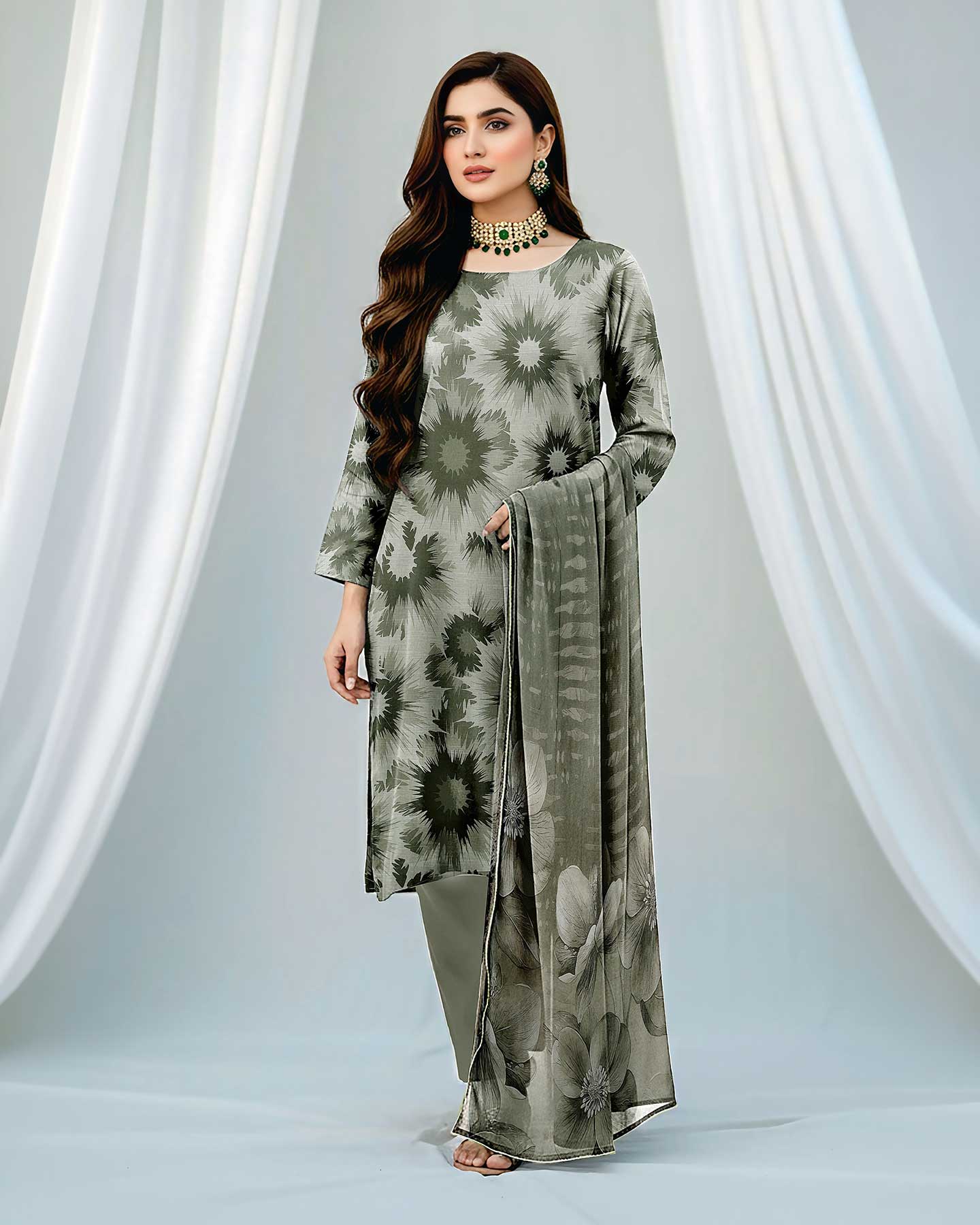 Luxury Crinkle Digital Print Dupatta