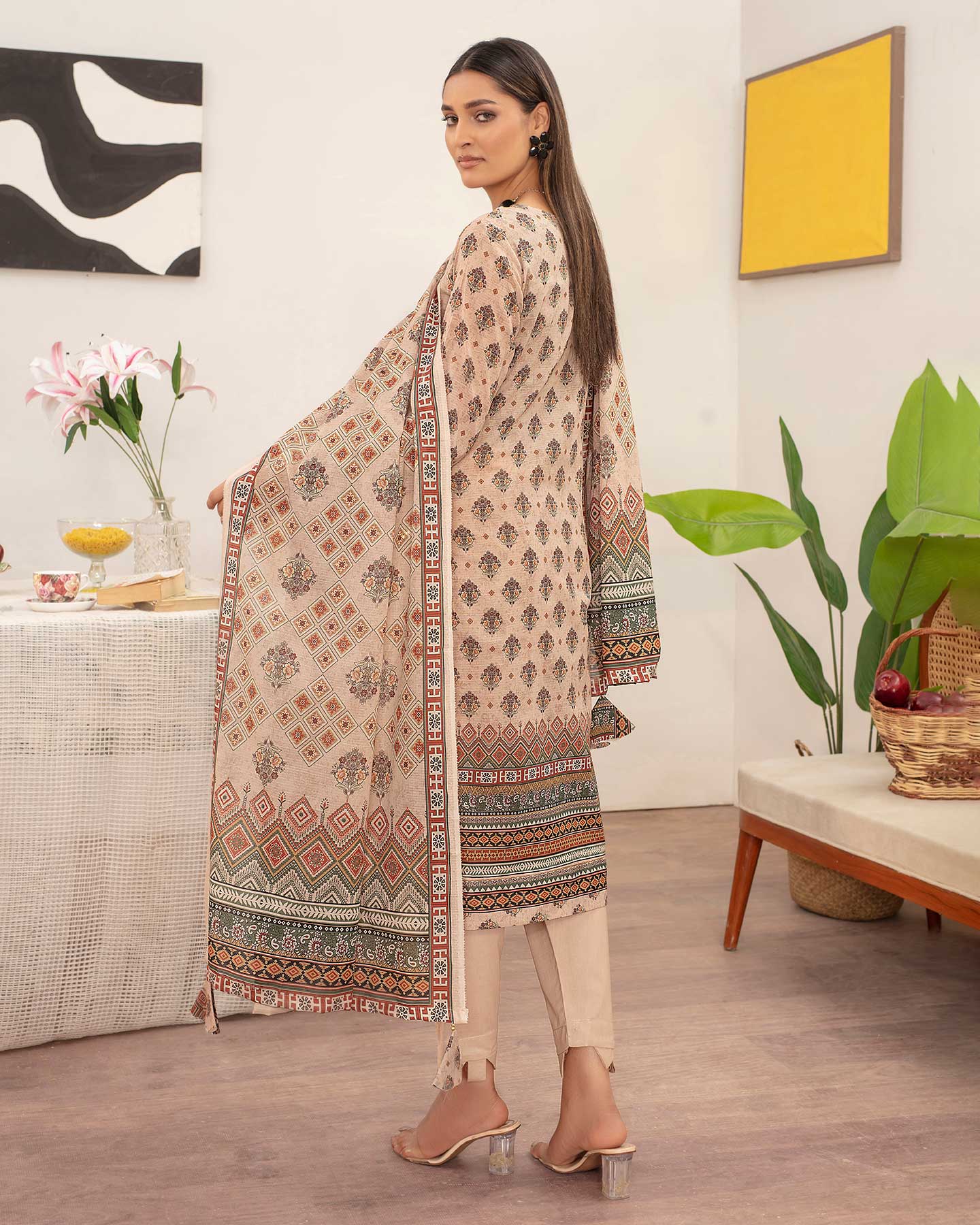 - Luxury Digital Printed Lawn Stripe Dupatta