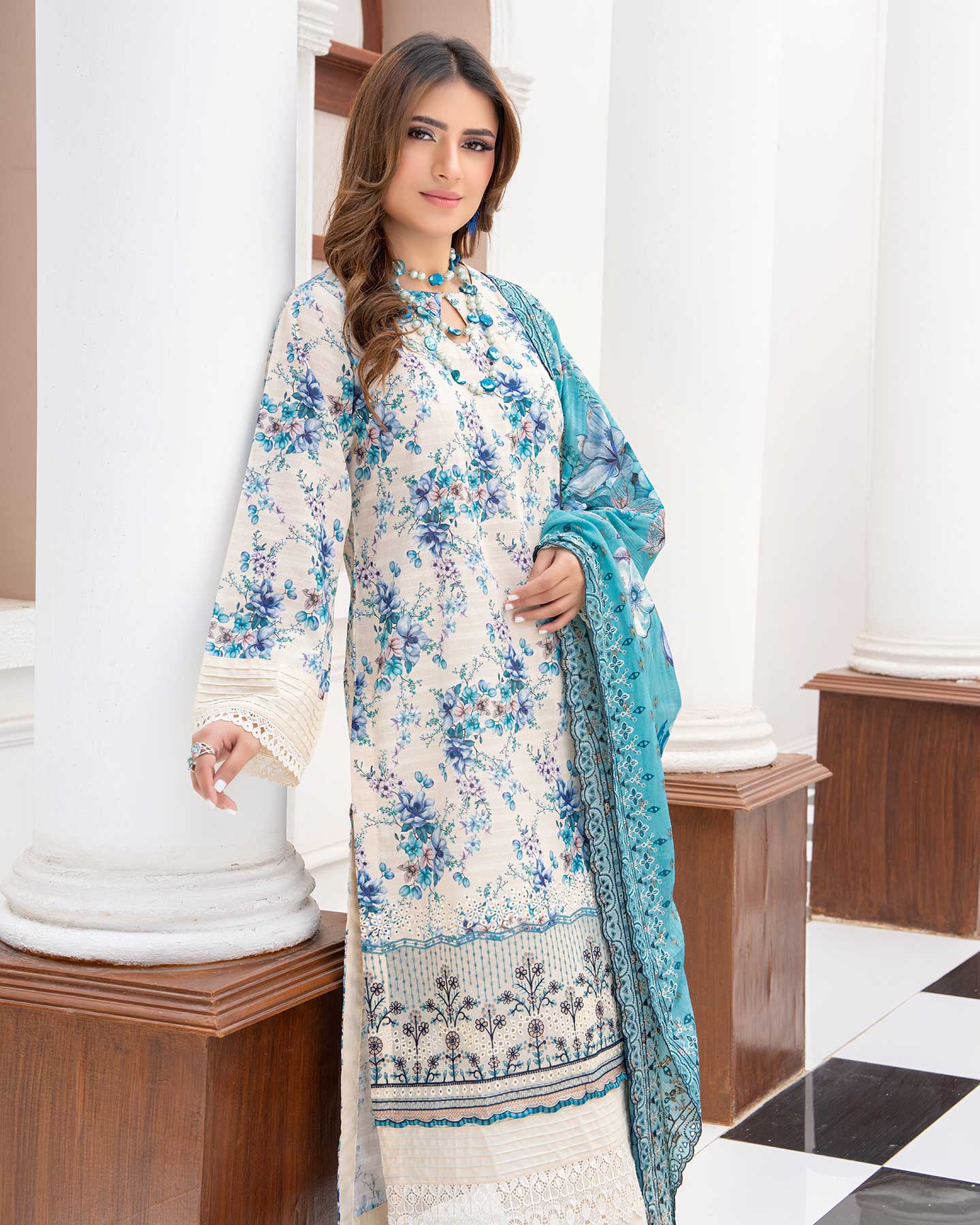 Premium Digital Printed Lawn Boring Daman Embroidered Stripe Shirt