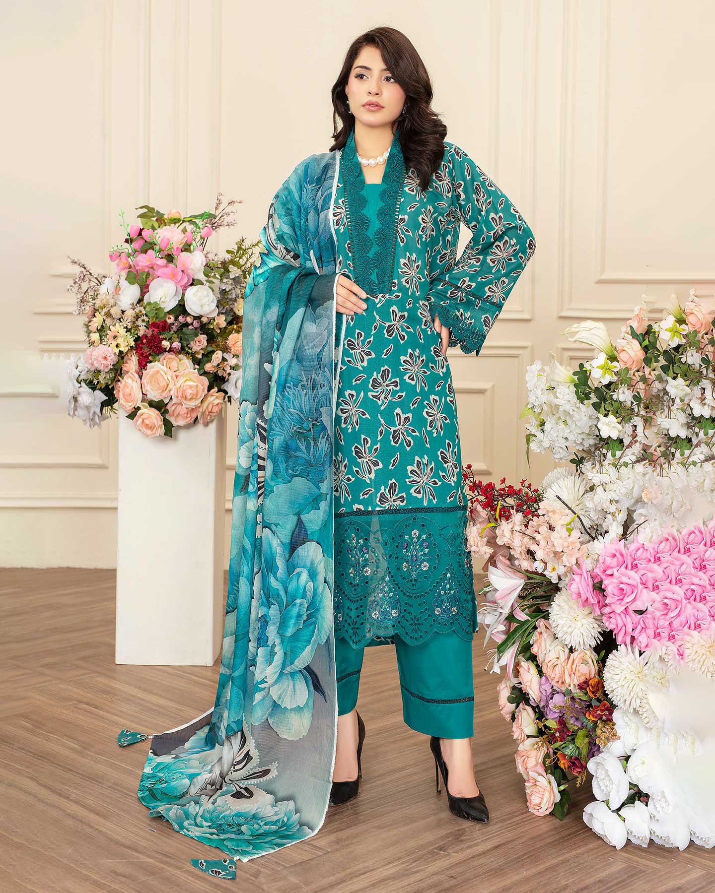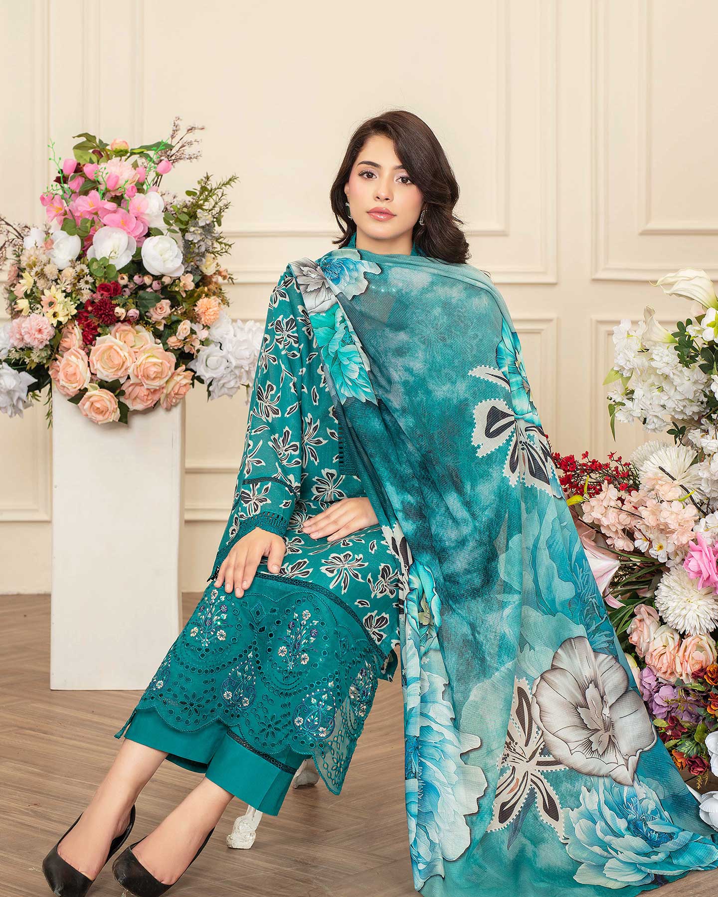Premium Digital Printed Lawn Boring Daman Embroidered Chamki Zarri Shirt