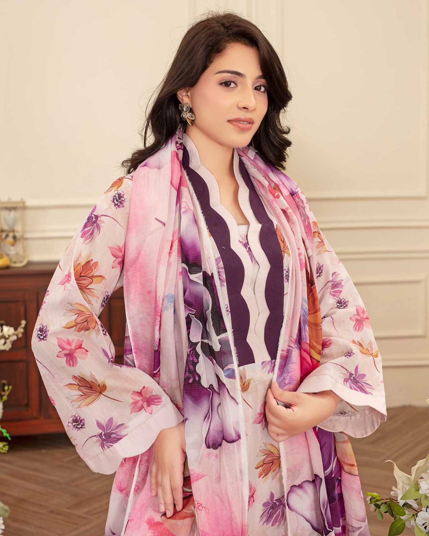 Premium Digital Printed Lawn Boring Daman Embroidered Chamki Zarri Shirt