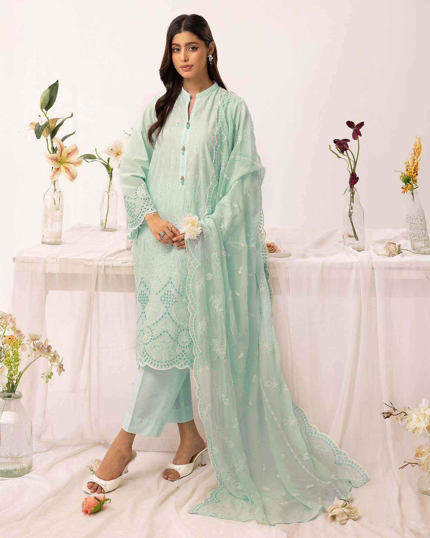 - Luxury Embroidered Crinkle Dupatta
