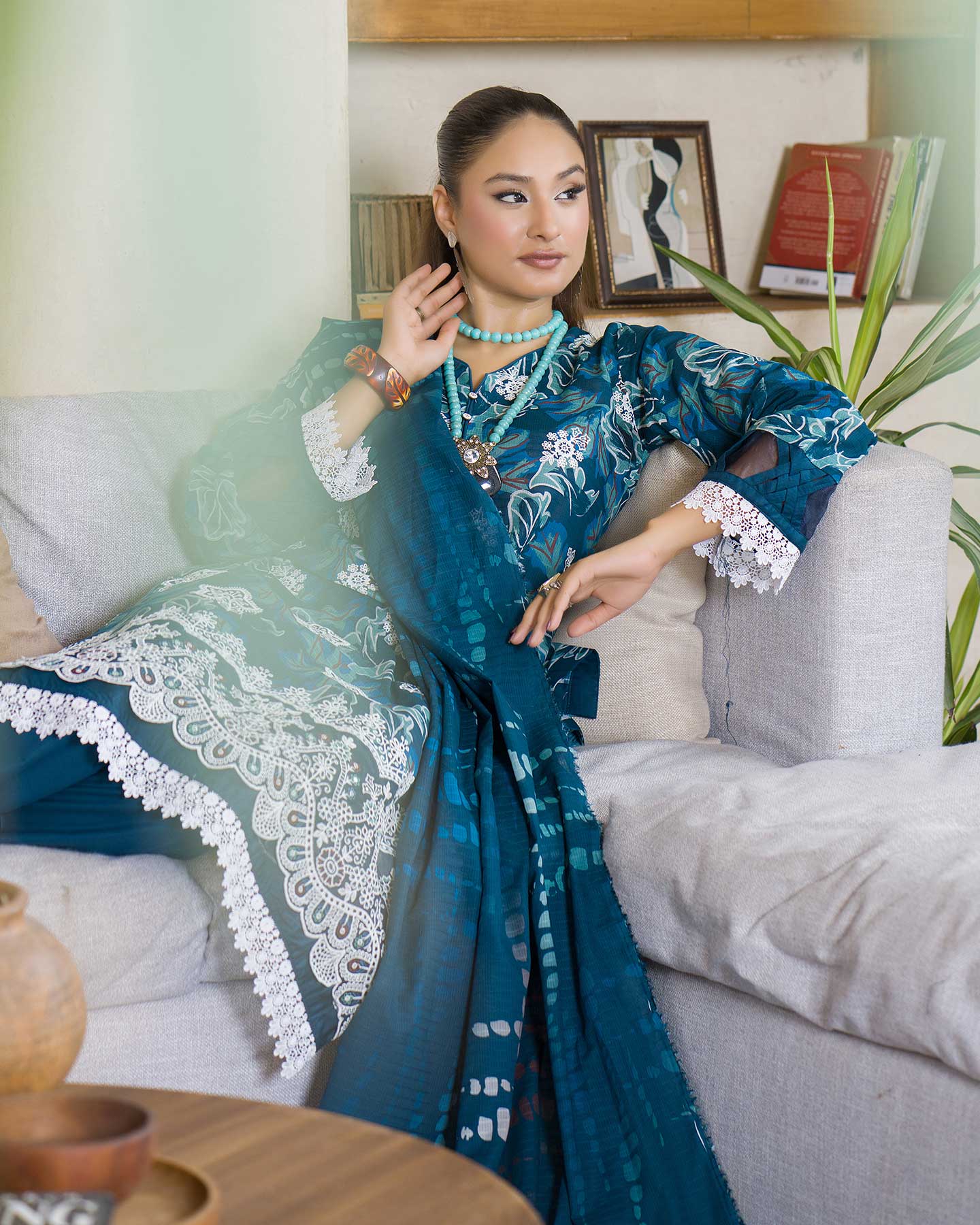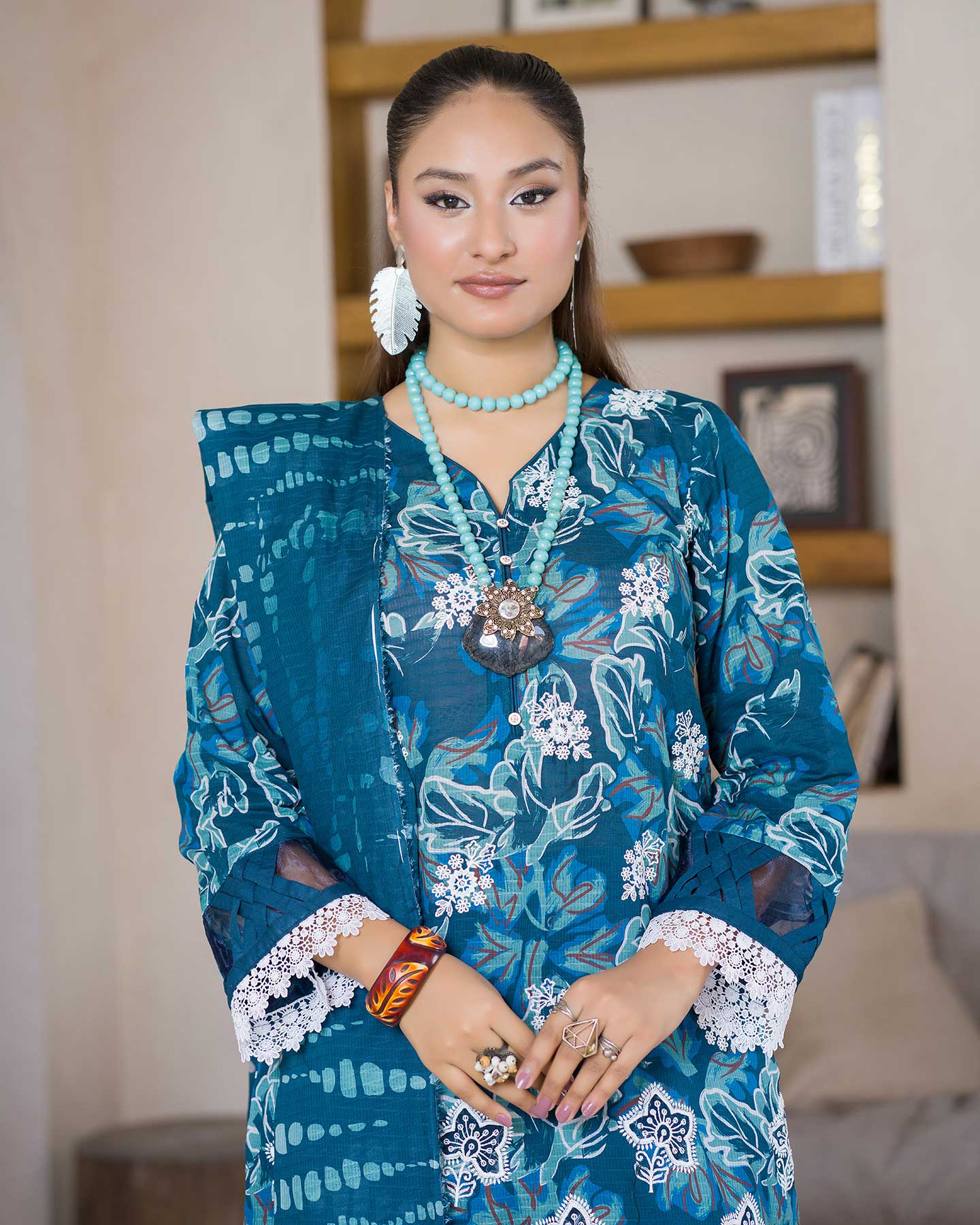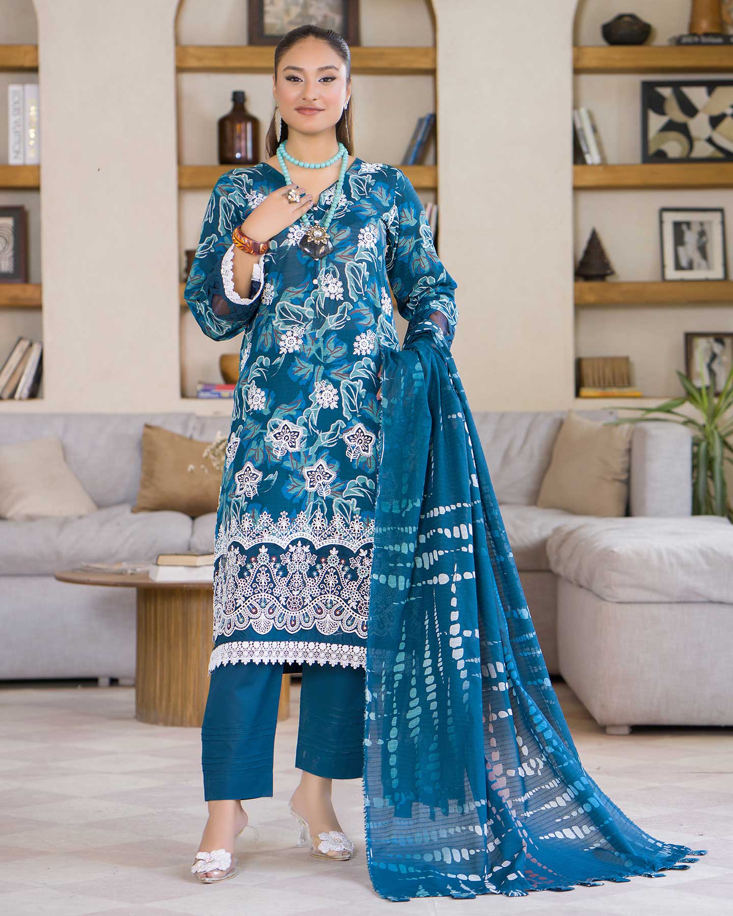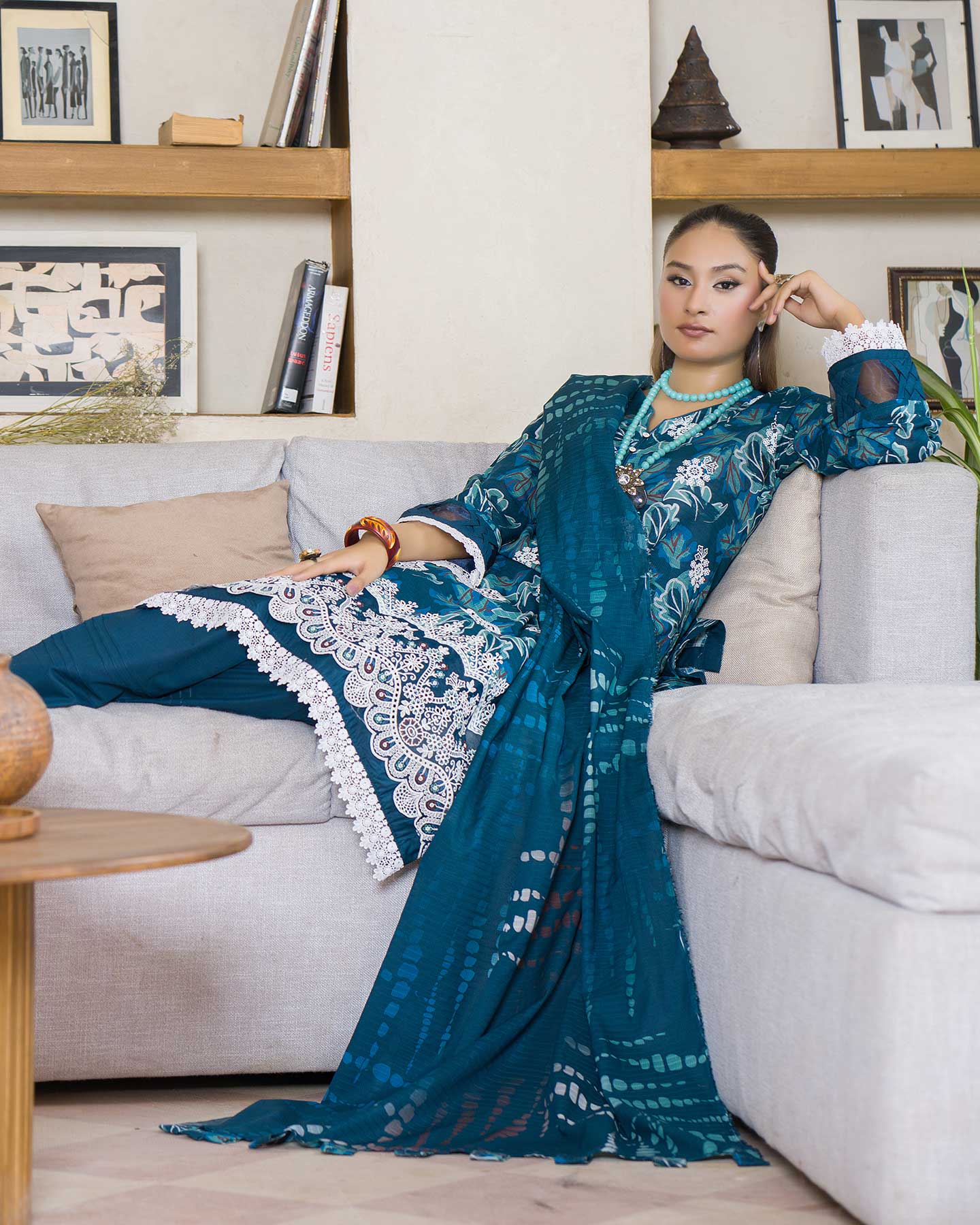 • Premium Embroidered Applic Work Lawn Stripe Digital Print Shirt
