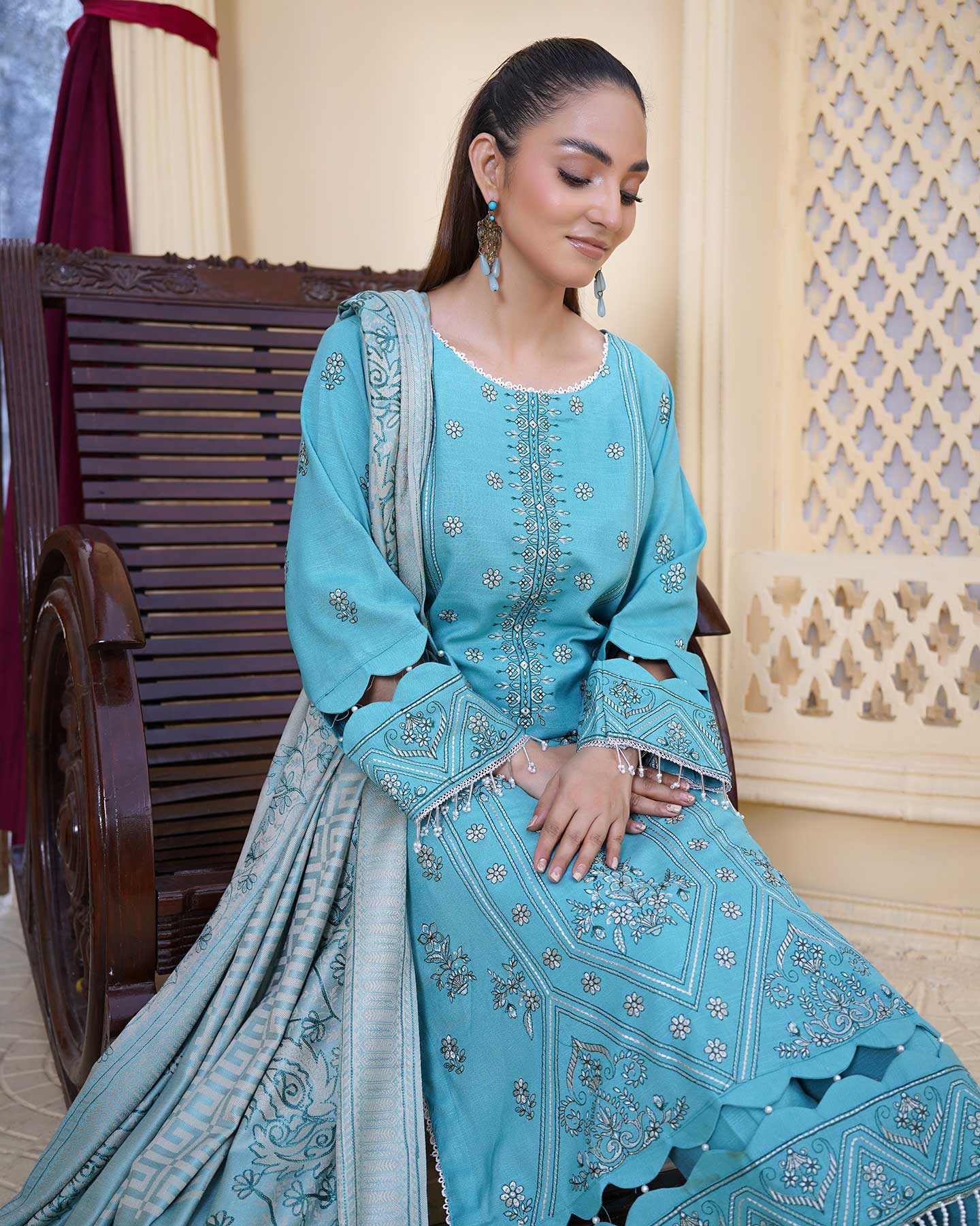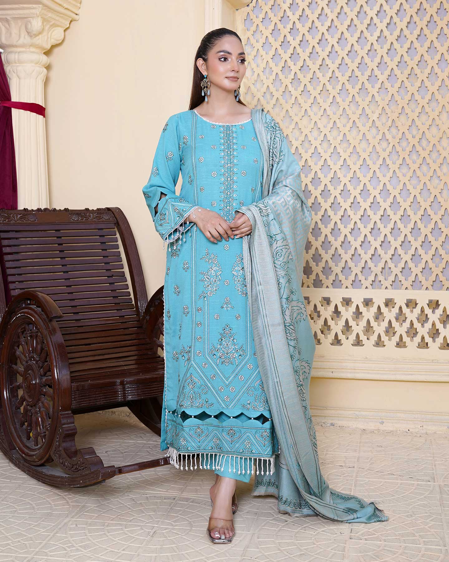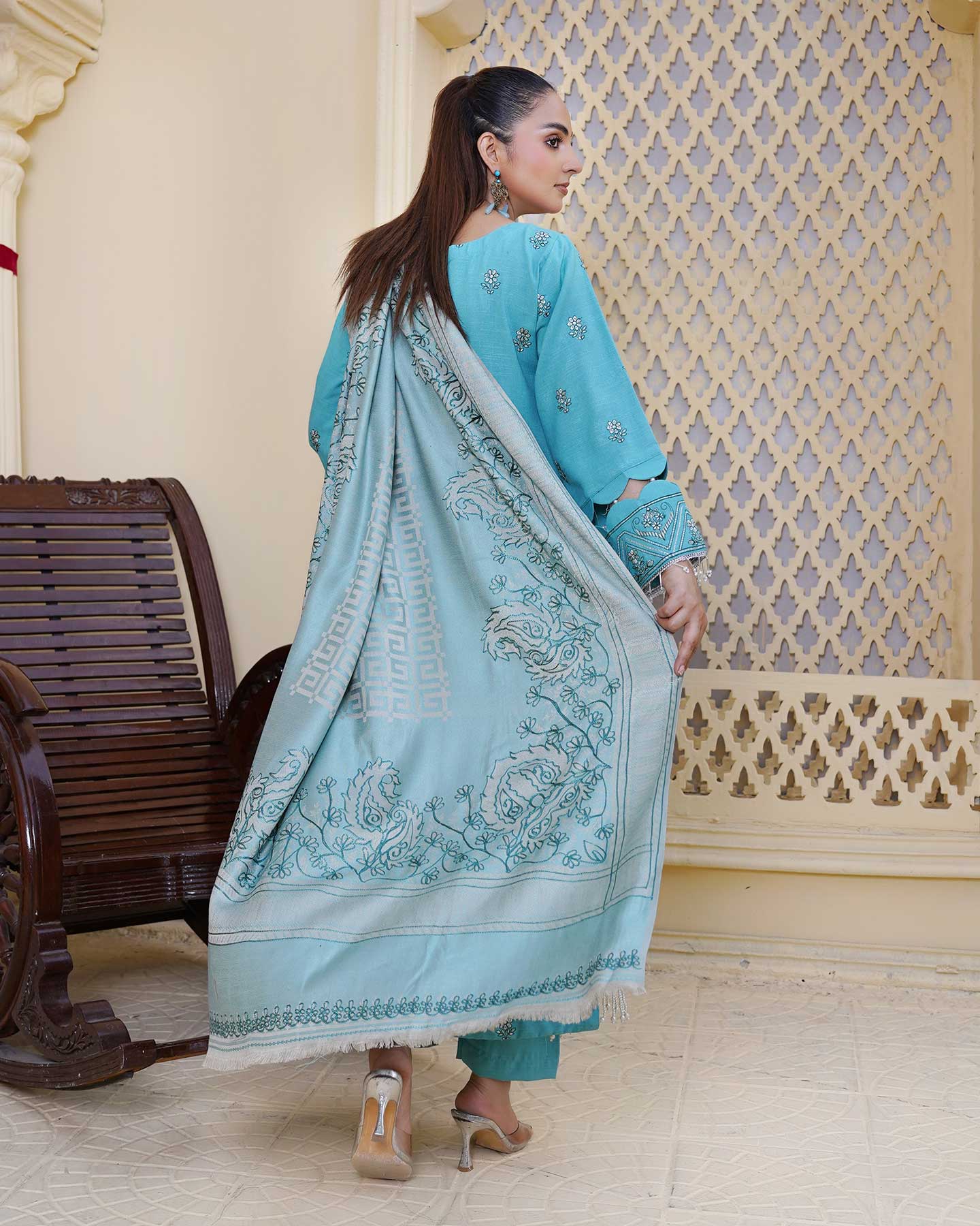 - FANCY ACRYLIC JACQUARD HANDMADE EMBROIDERED SHAWL