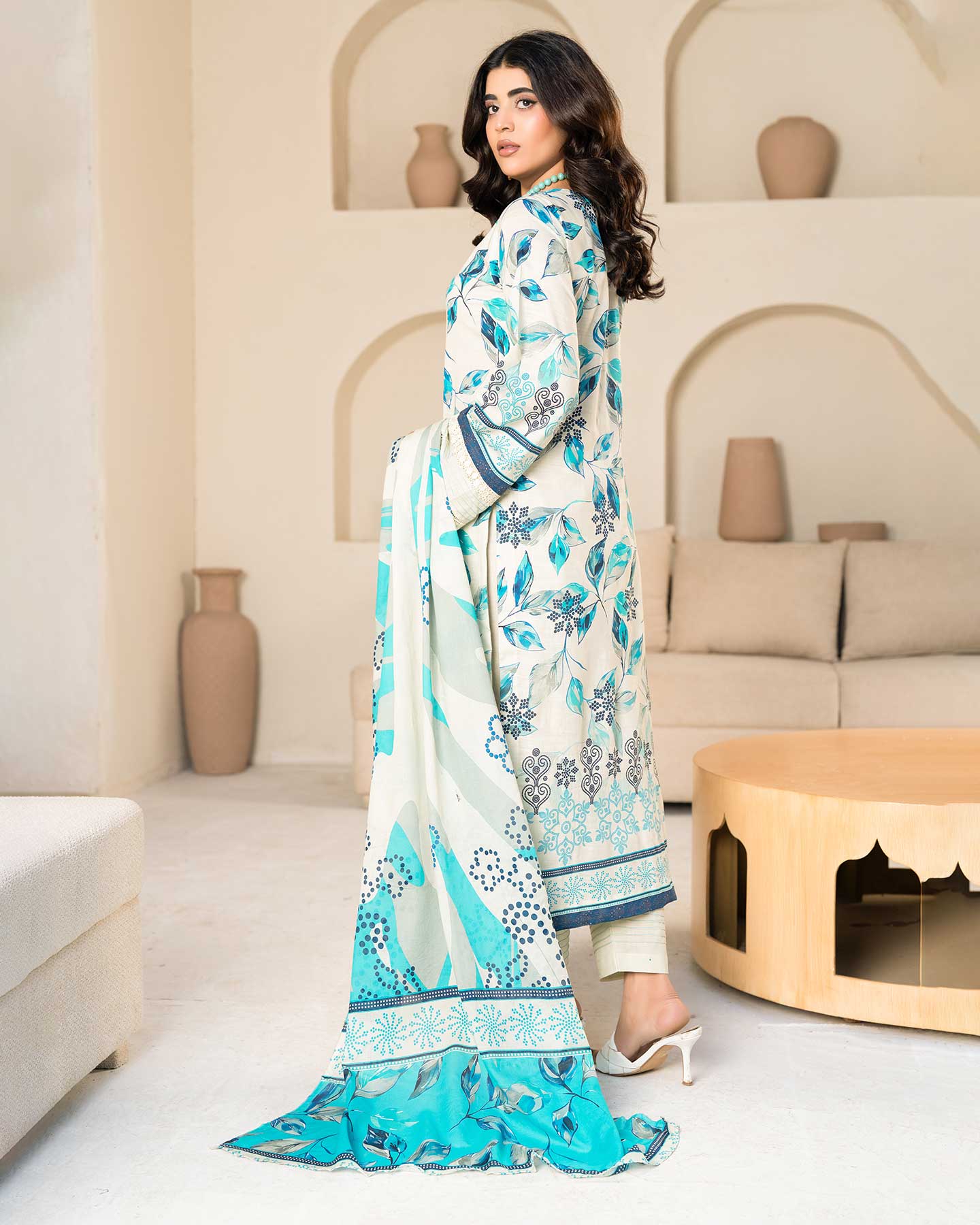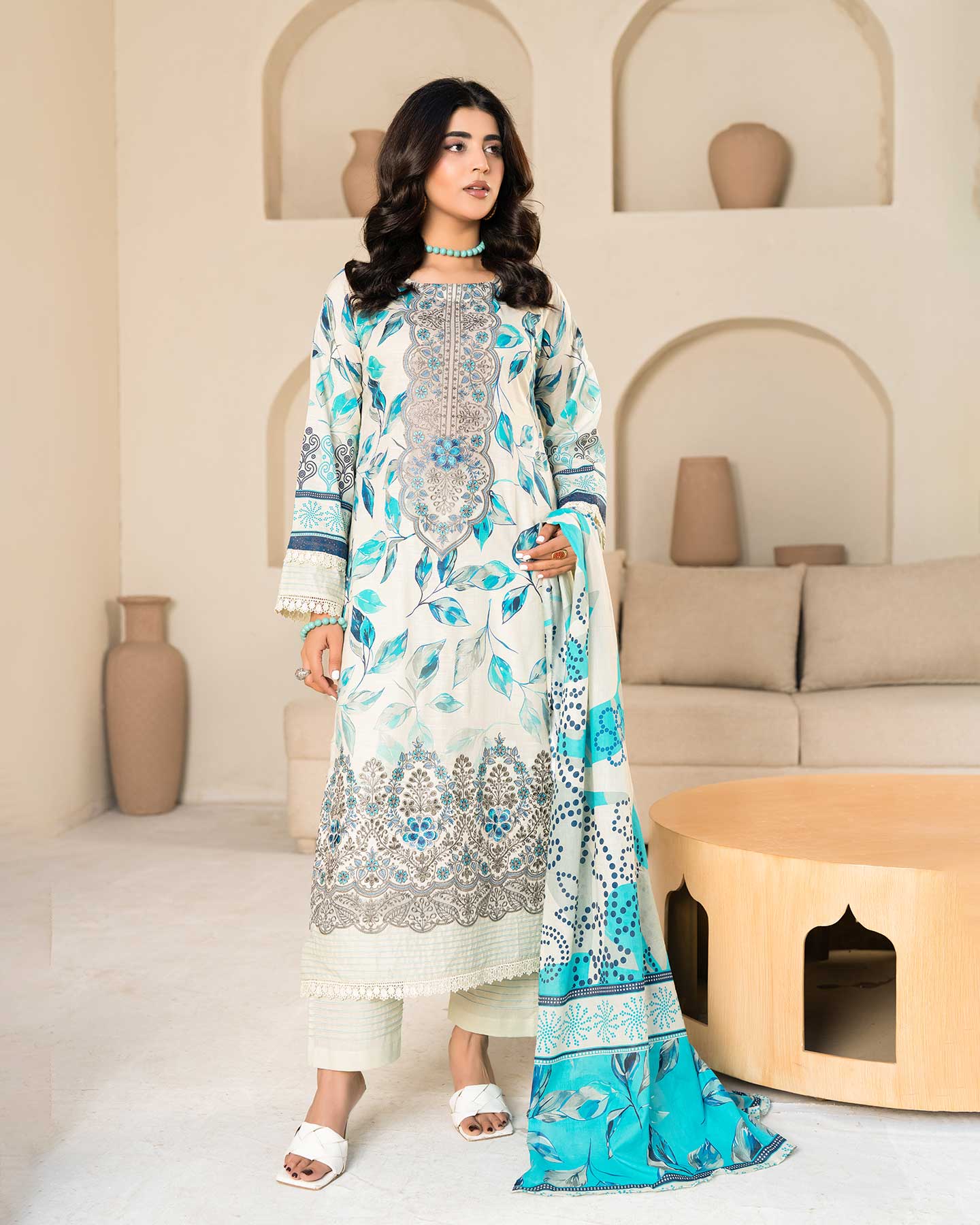 - PREMIUM 3D FLOWER EMBROIDERED LAWN SLUB DIGITAL PRINT SHIRT