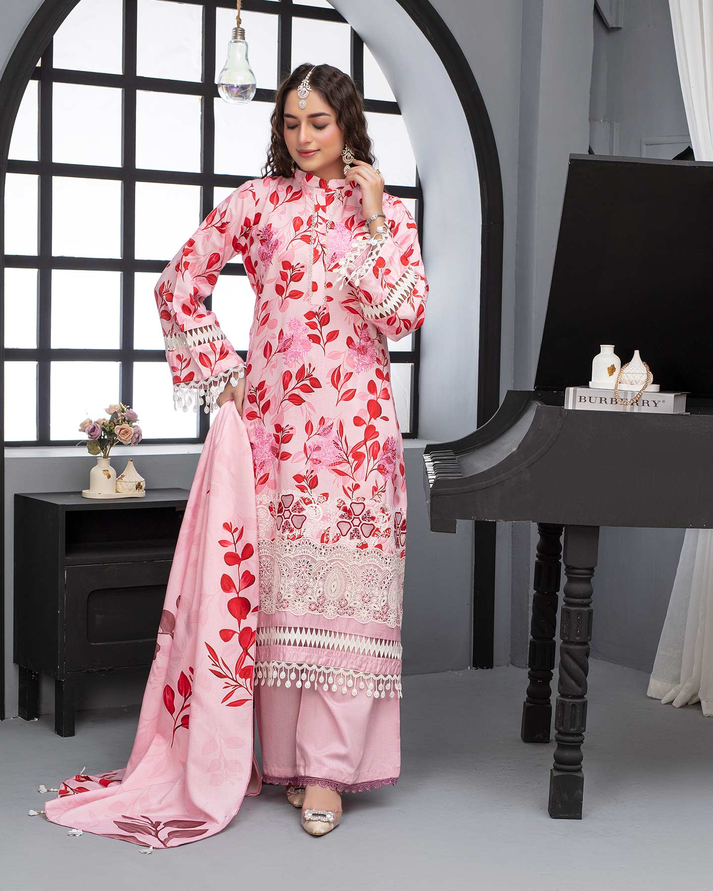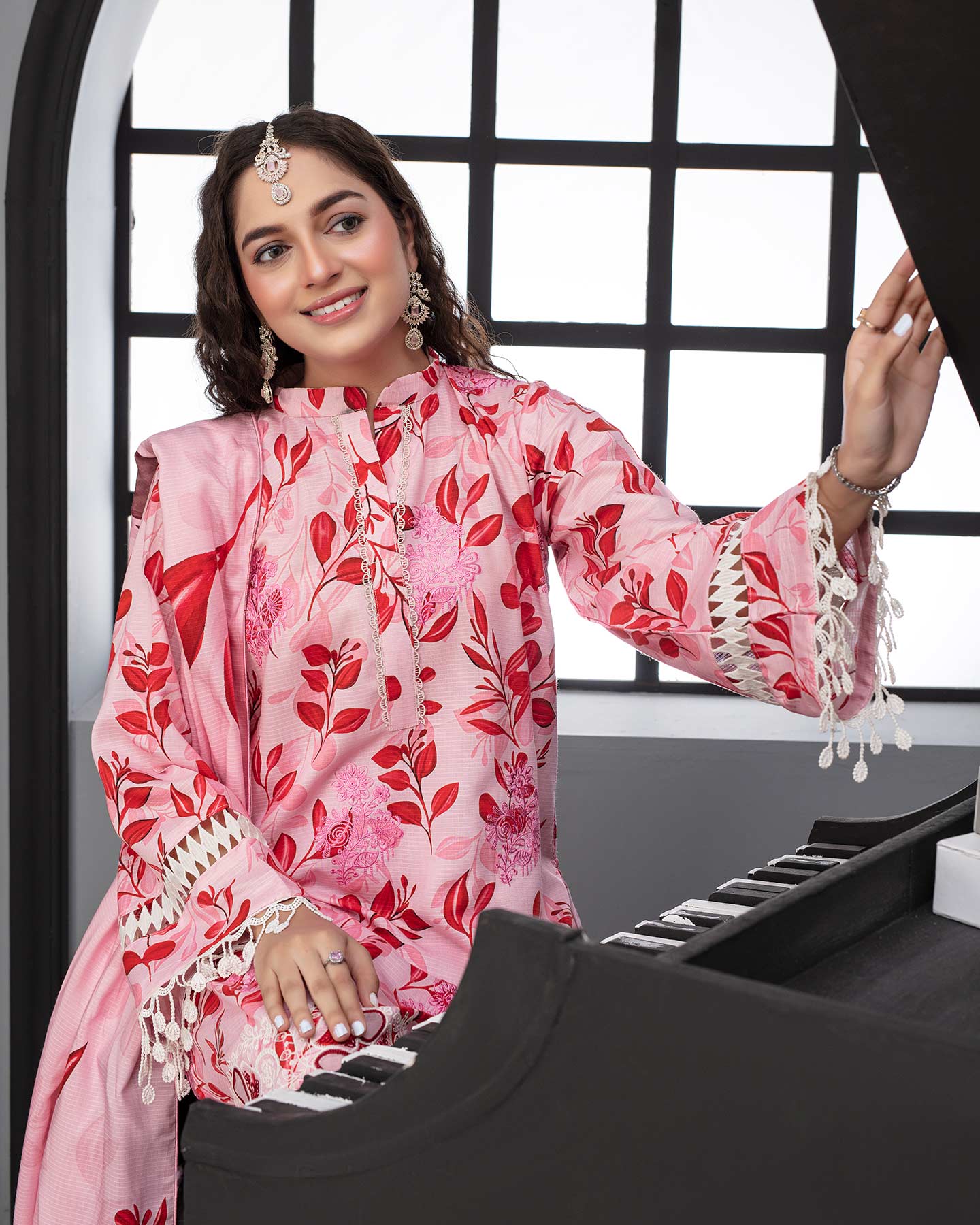- Exclusive Digital Print Viscose Stripe Embroidered Aplic Work Shirt