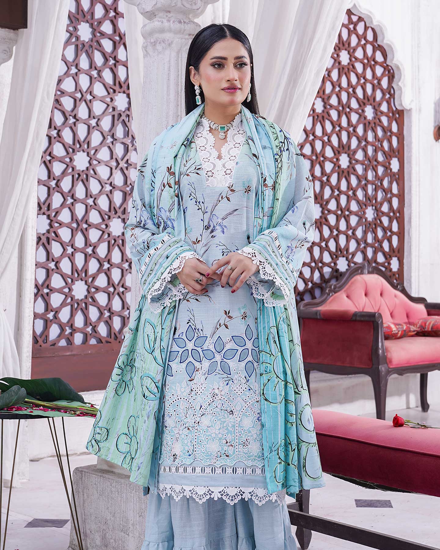 EXCLUSIVE DIGITAL PRINT KHADAR SLUB KARANDI EMBROIDERED APPLIC SHIRT
