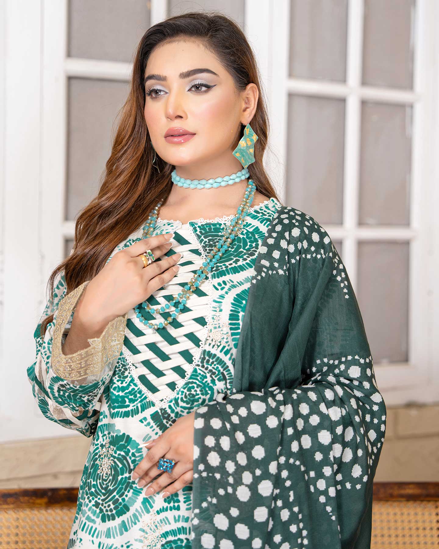 - Premium Embroidered Aplic Work Digital Printed Staple Slub Shirt