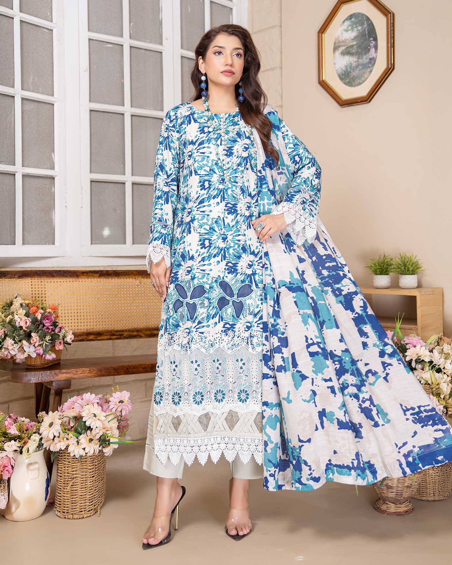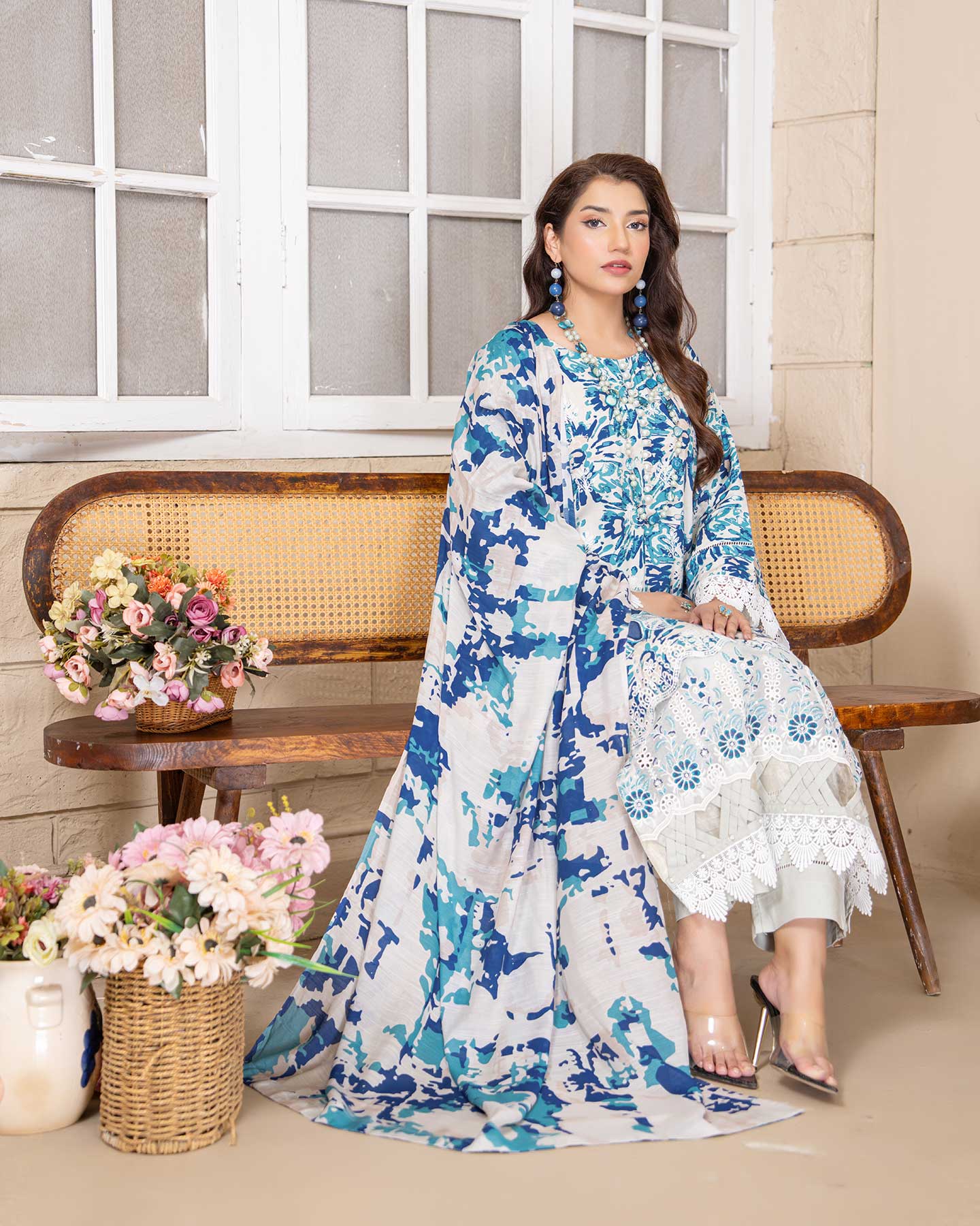 - Premium Embroidered Aplic Work Digital Printed Staple Slub Shirt
