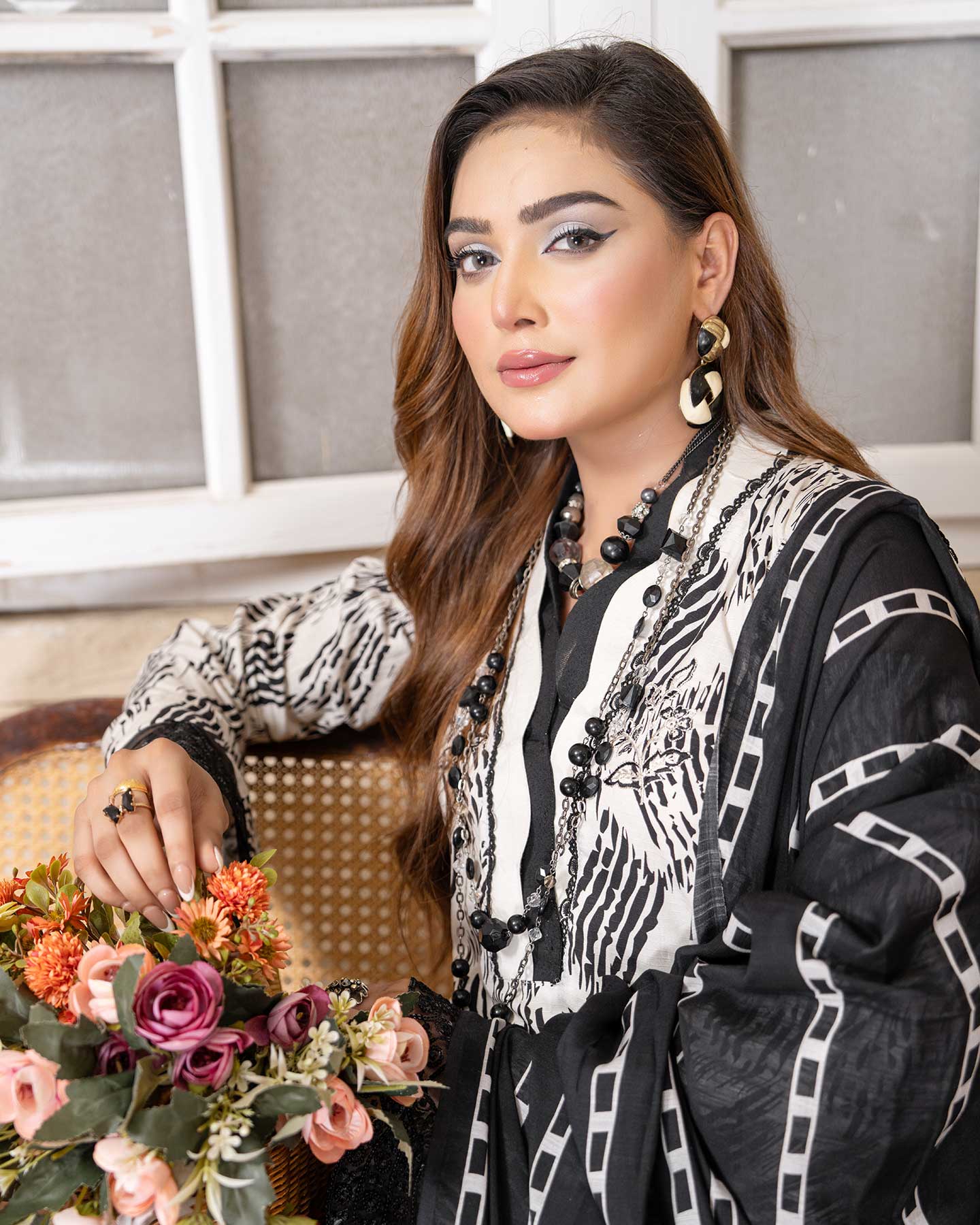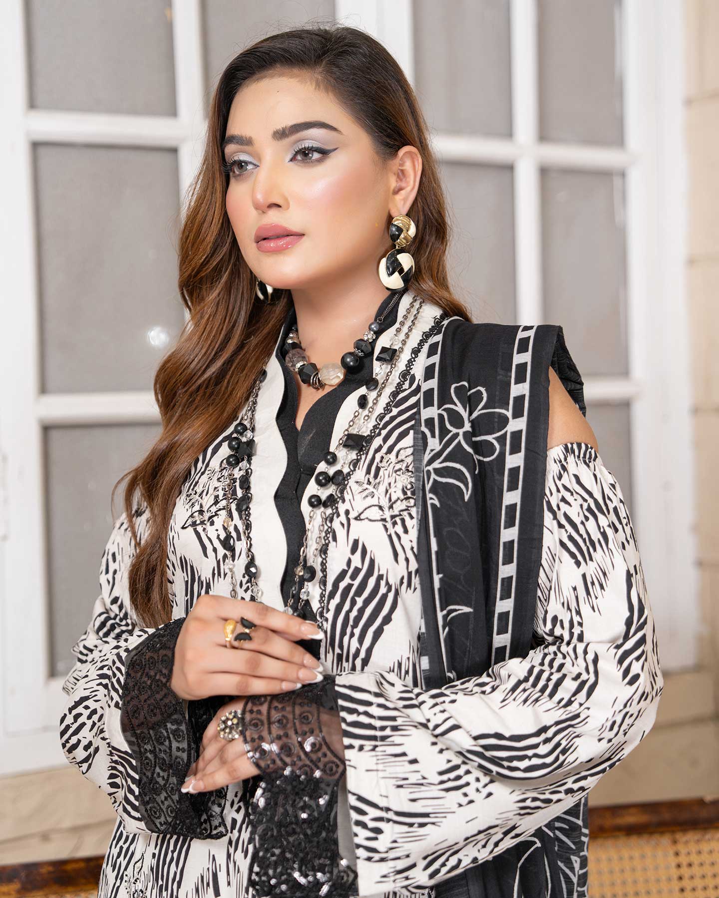 - Premium Embroidered Aplic Work Digital Printed Staple Slub Shirt