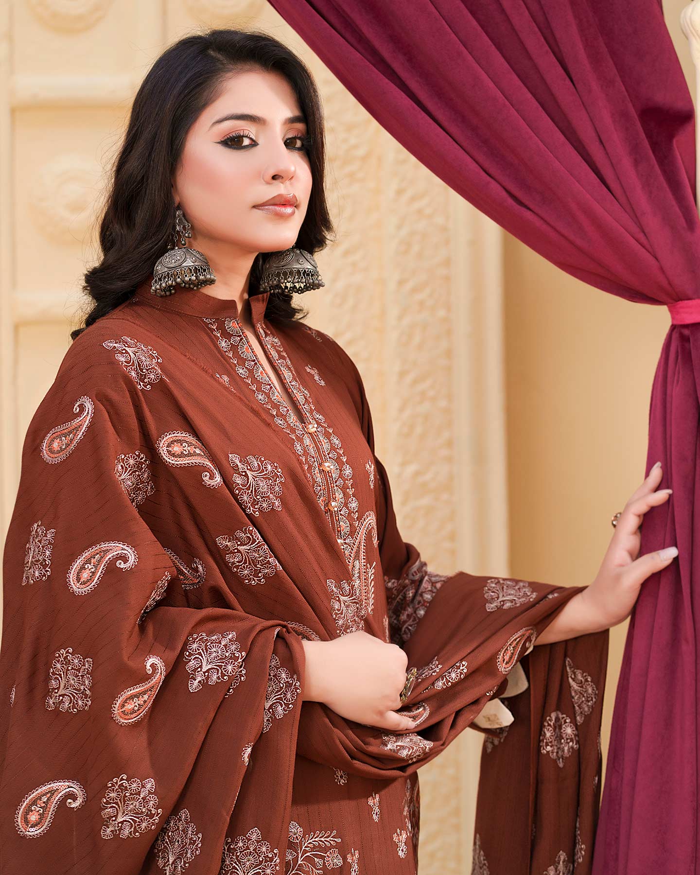 - PREMIUM EMBROIDERED FANCY DHANAK ZARI TARKASHI SHIRT