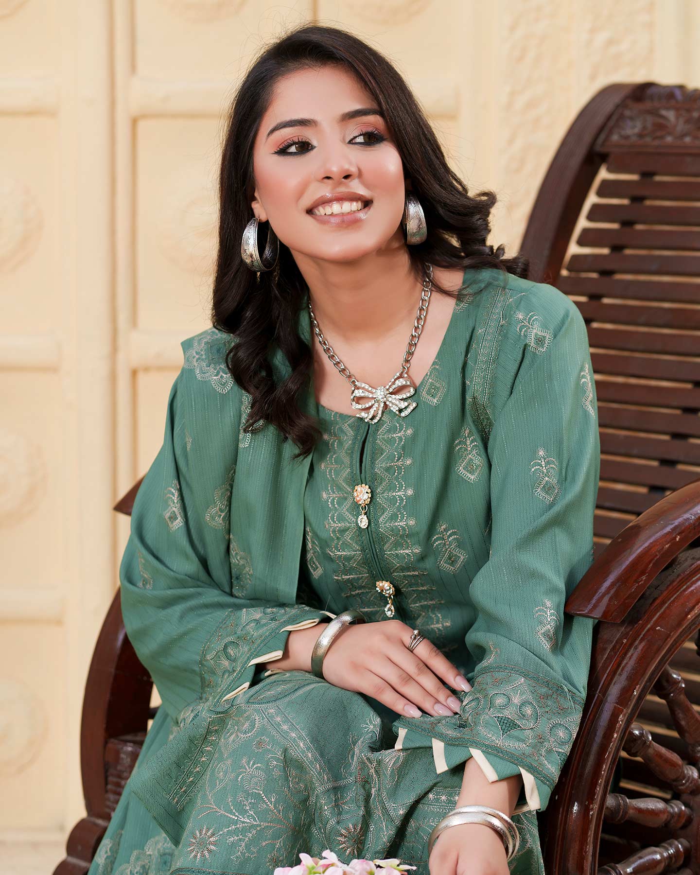 - PREMIUM EMBROIDERED FANCY DHANAK ZARI TARKASHI SHIRT