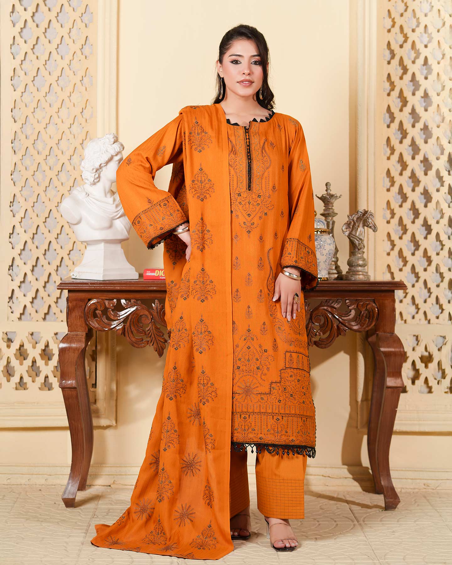 - PREMIUM EMBROIDERED FANCY DHANAK ZARI TARKASHI SHIRT
