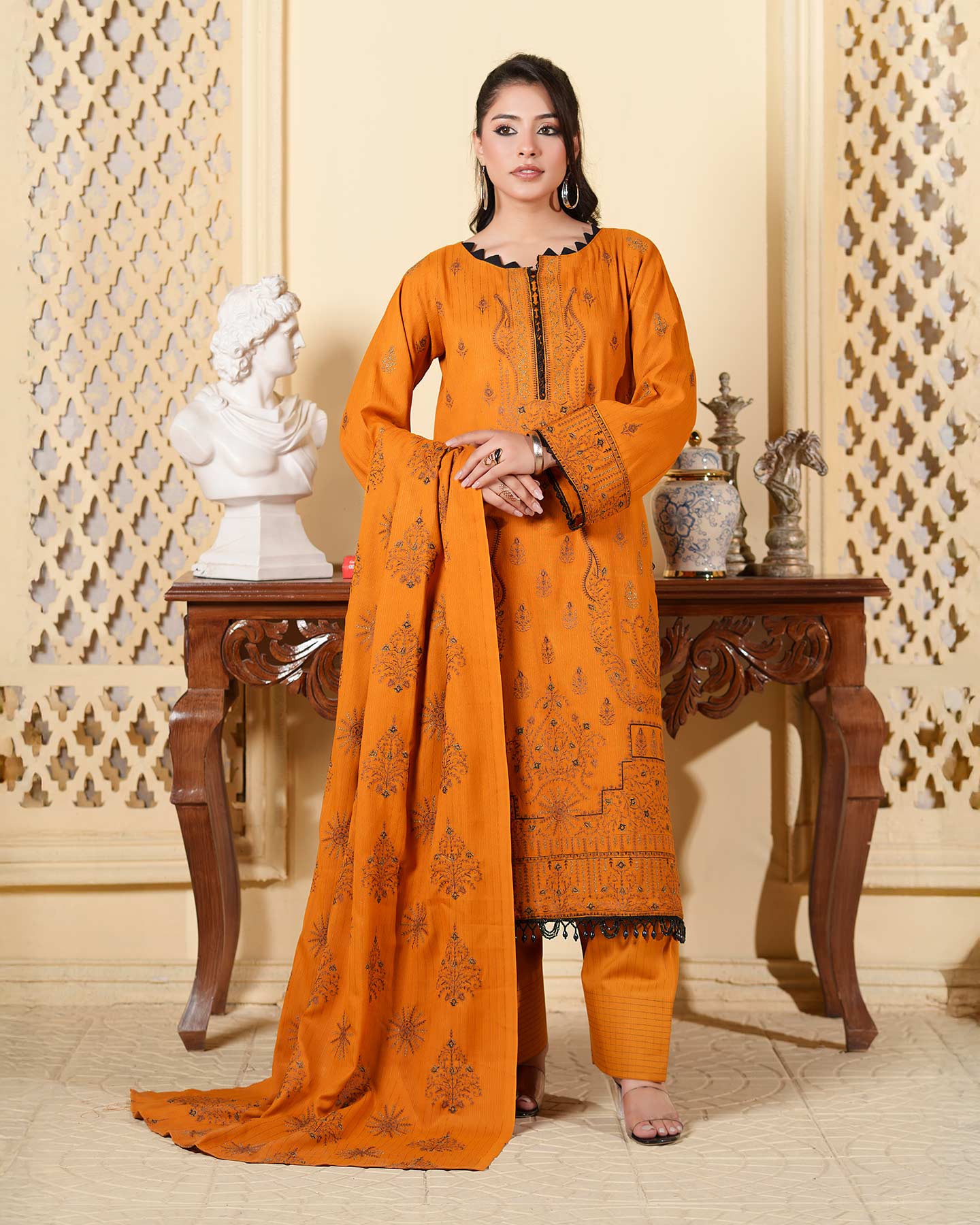 Note : Embroidery shirt have been styled in the image for photography and illustrative purposes. The standard style comes as a long sleeved kameez.