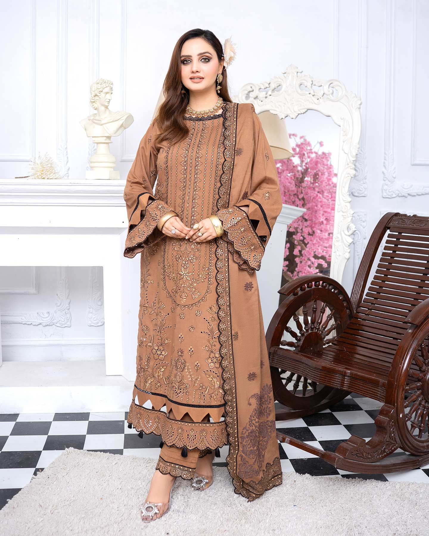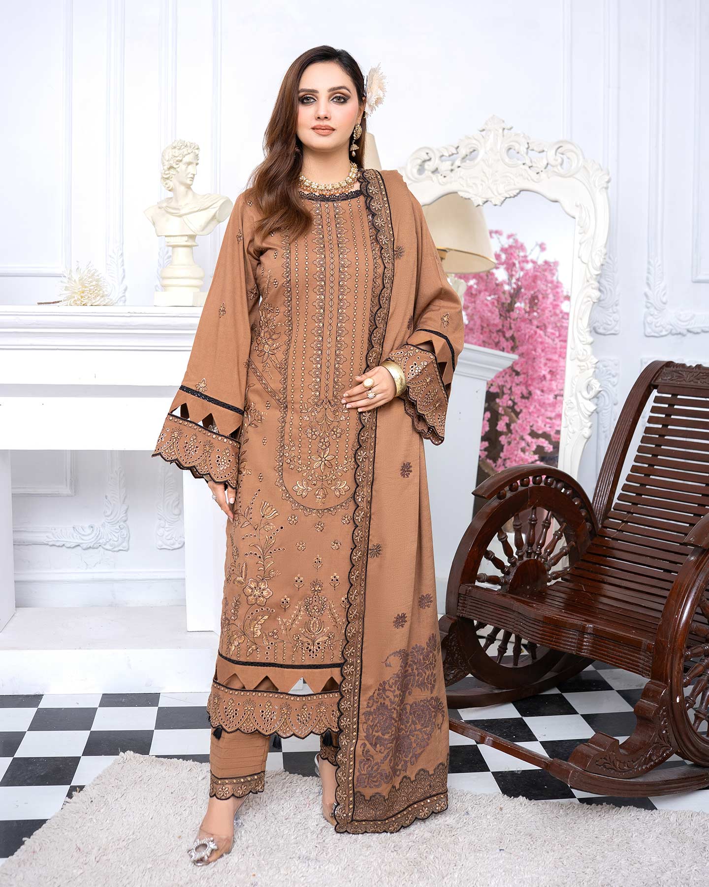 Note : Embroidery shirt have been styled in the image for photography and illustrative purposes. The standard style comes as a long sleeved kameez.