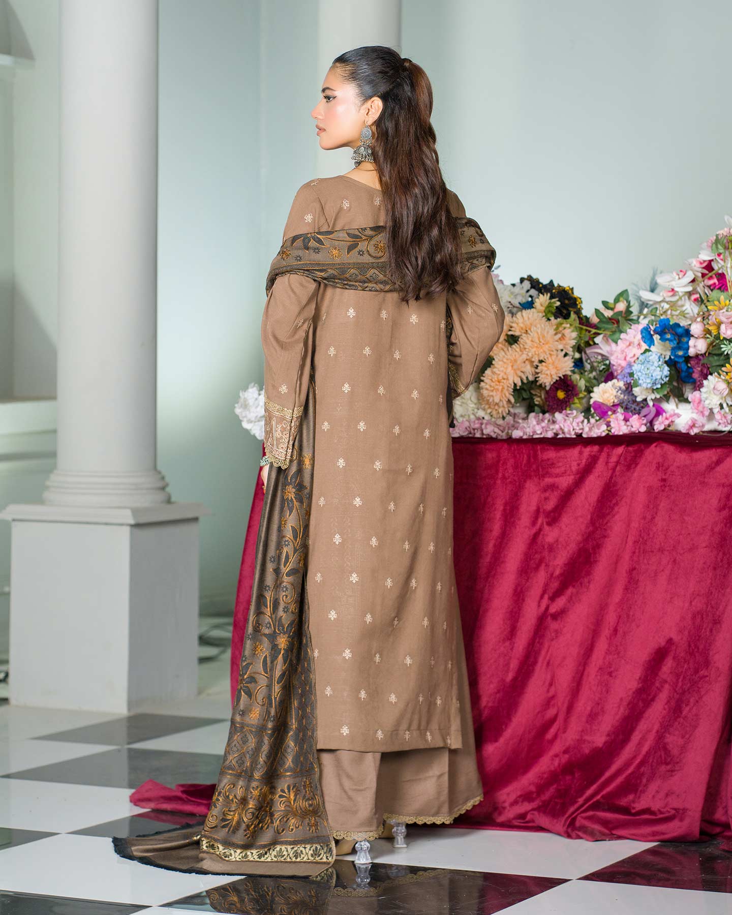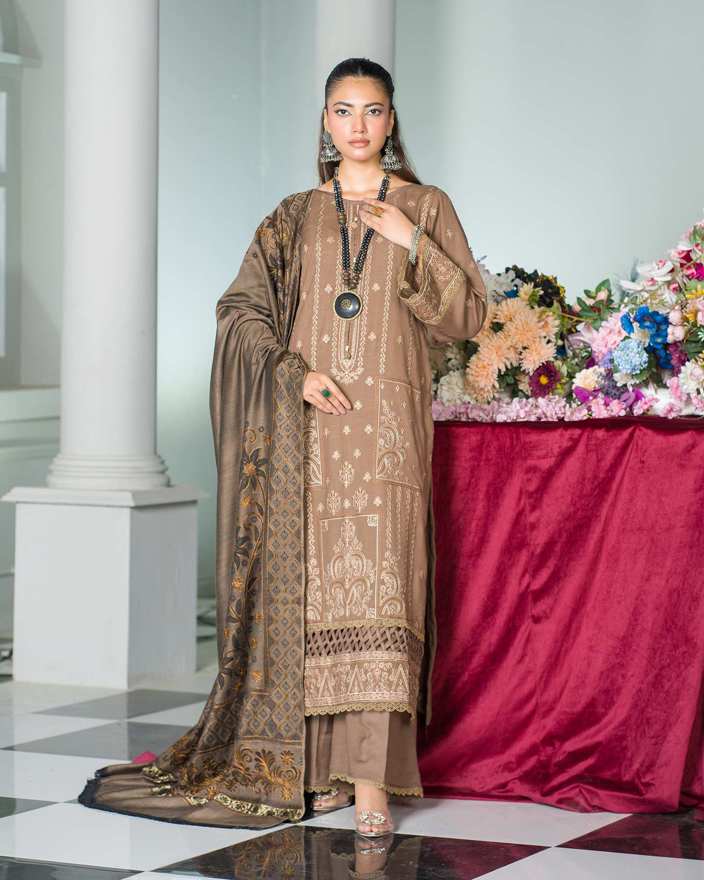 - FANCY ACRYLIC JACQUARD HANDMADE EMBROIDERED SHAWL