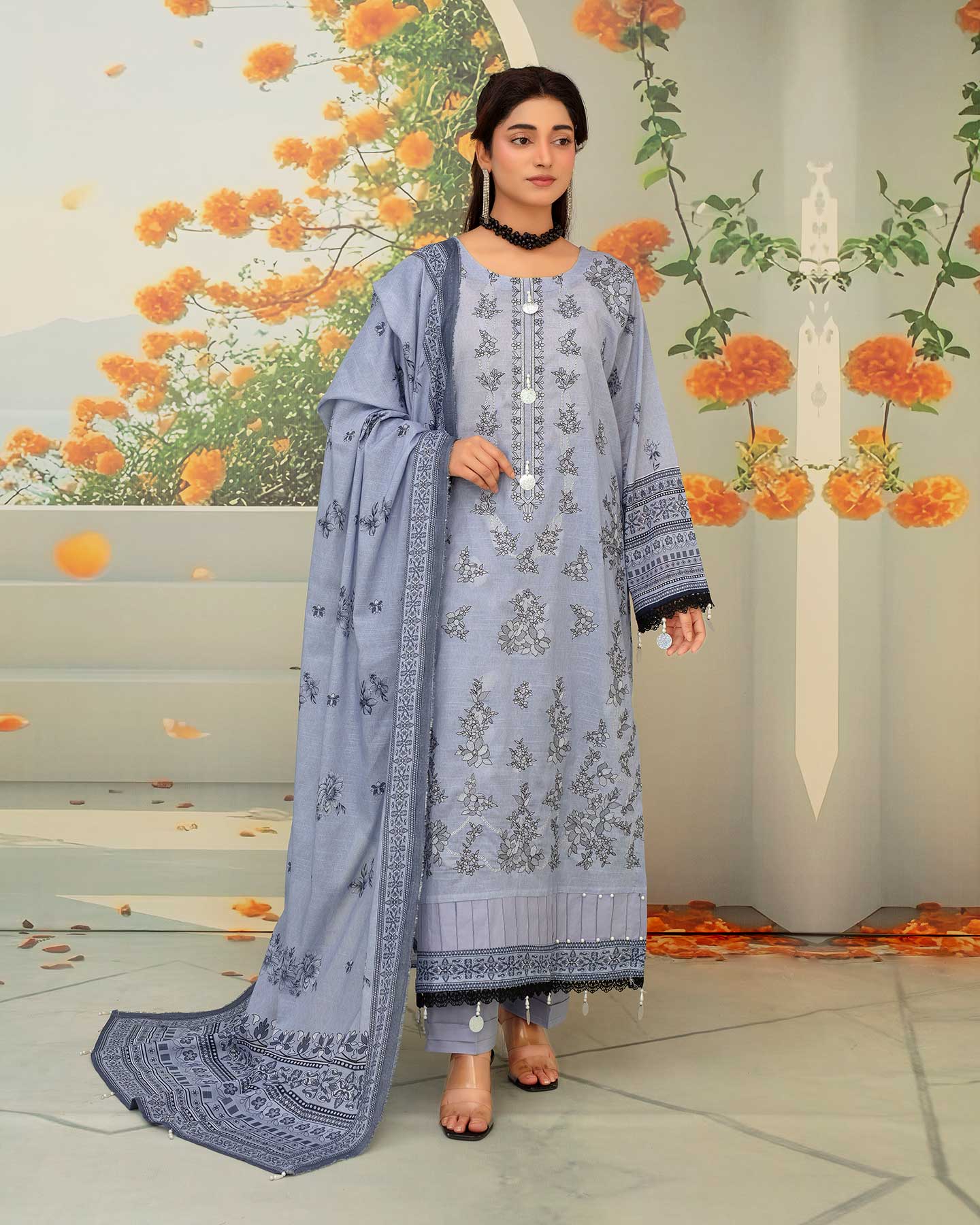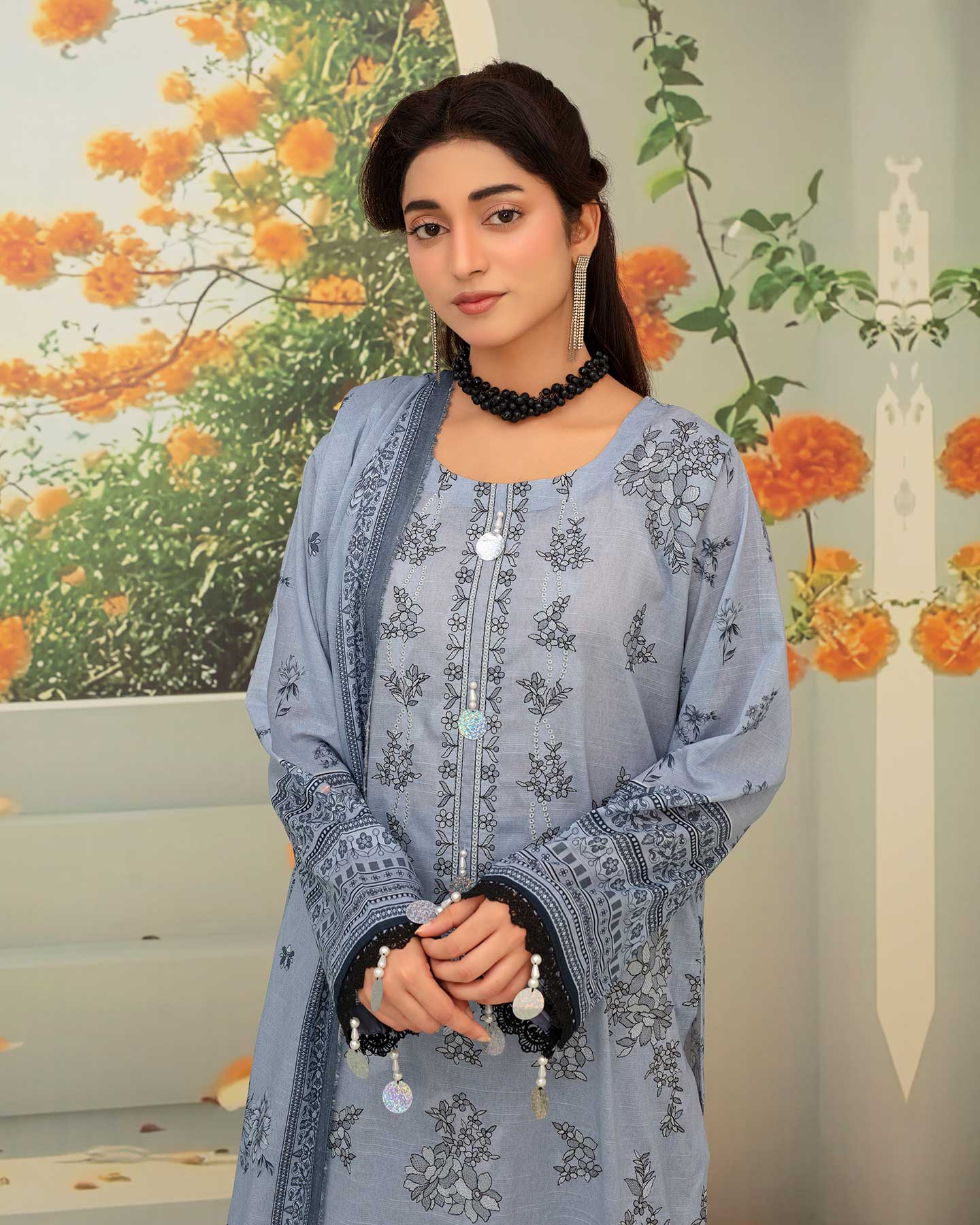 - Exclusive Embroidered Digital Print Fancy Lawn Strip Shirt