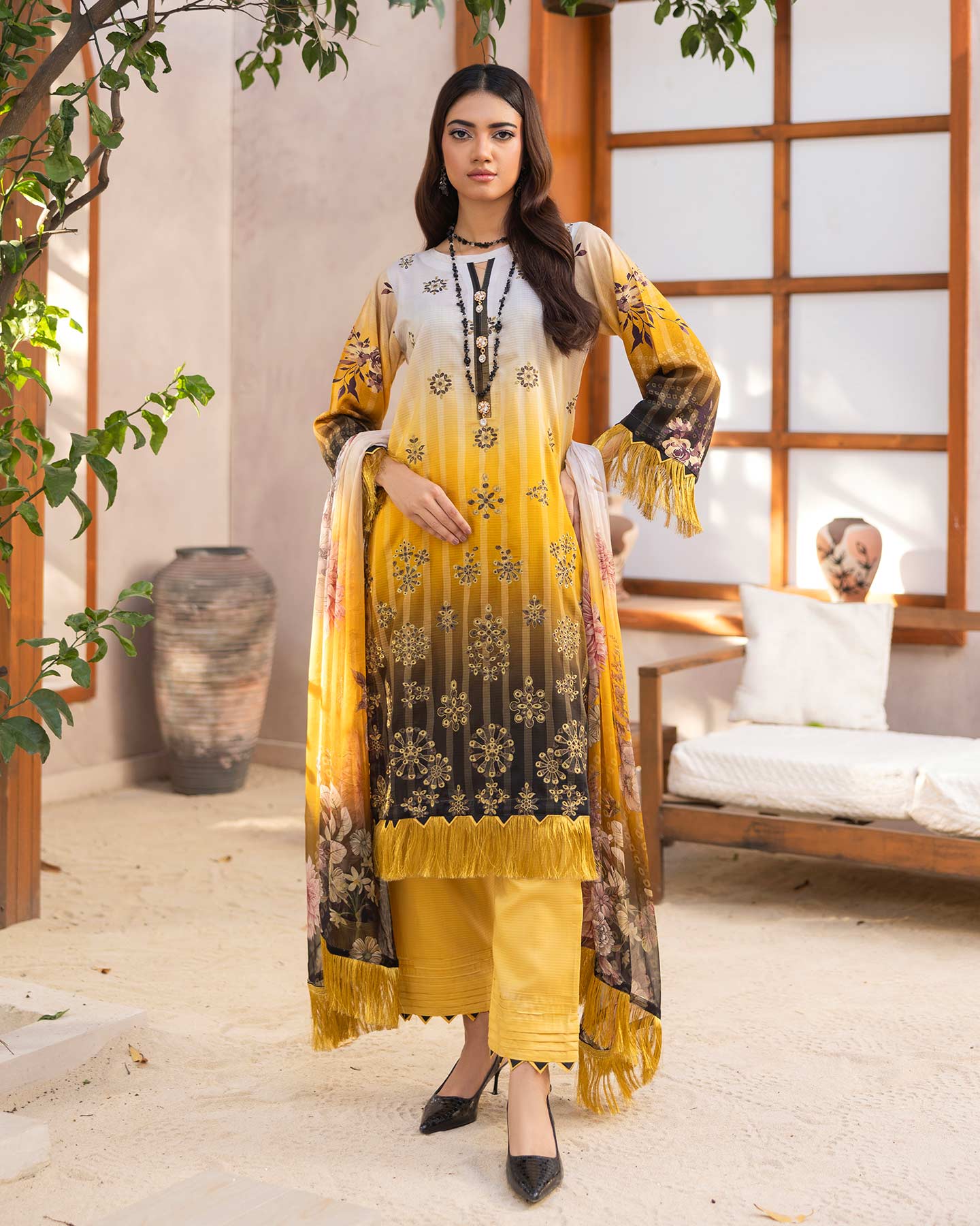 Exclusive Digital Print Viscose Stripe Embroidered Shirt