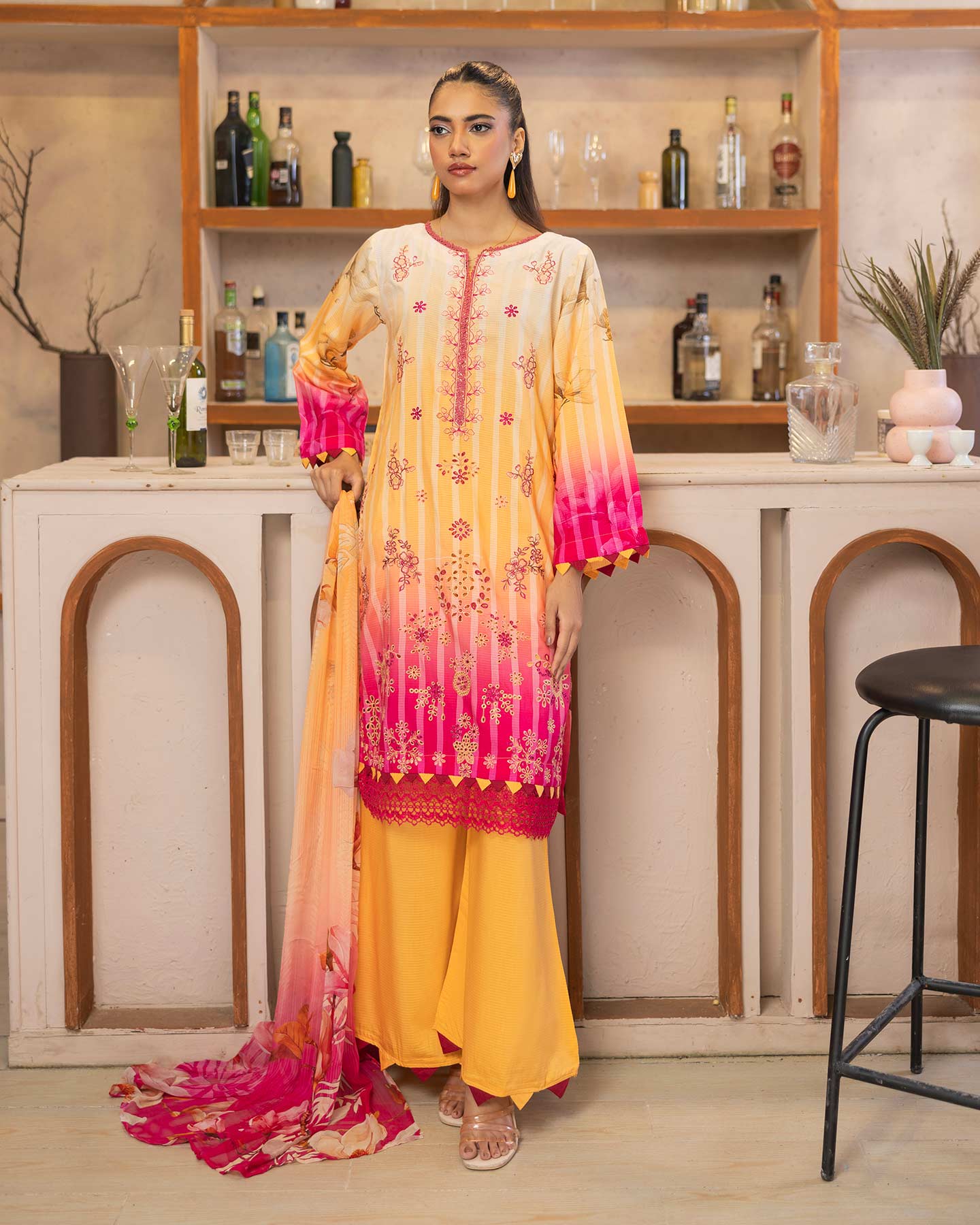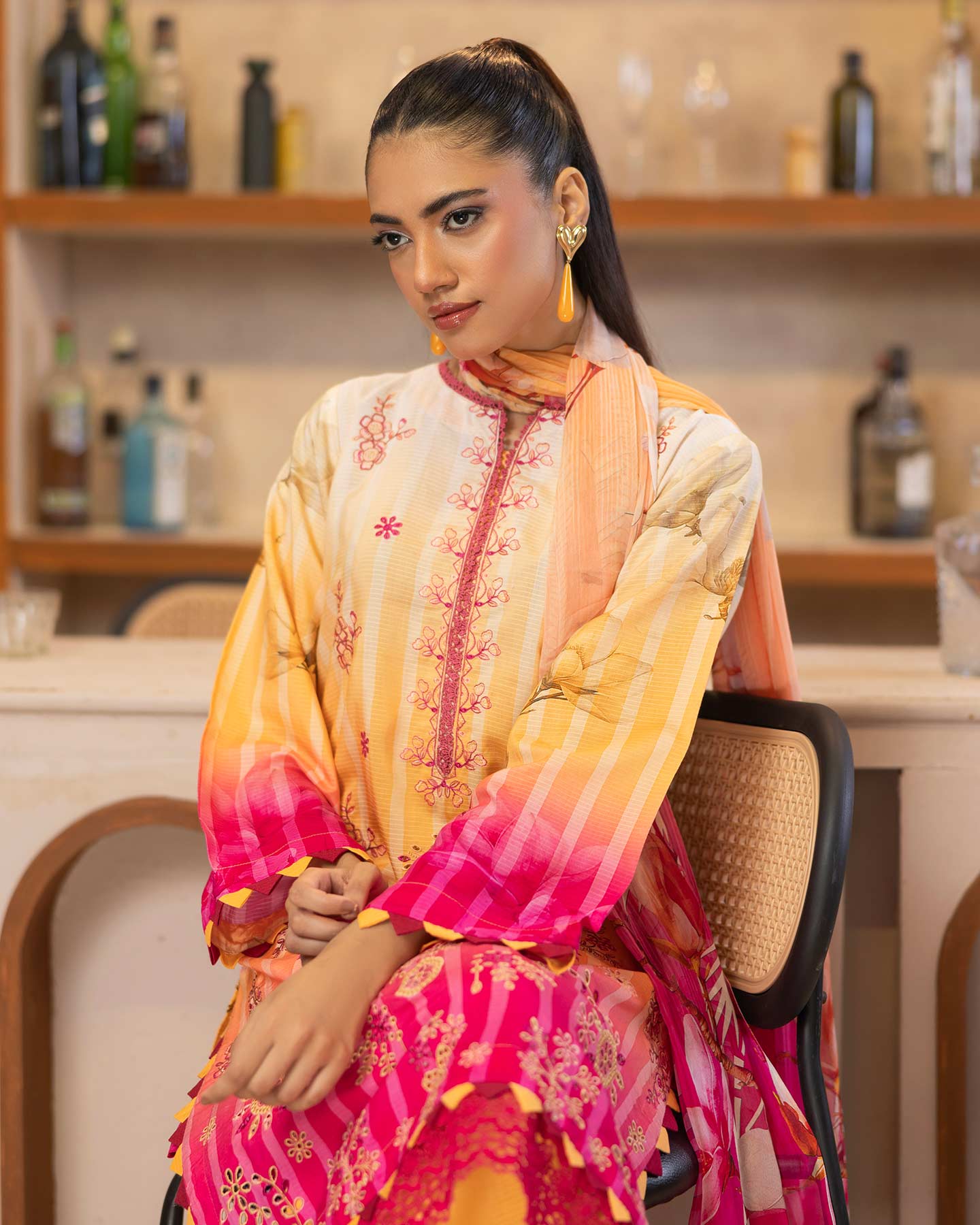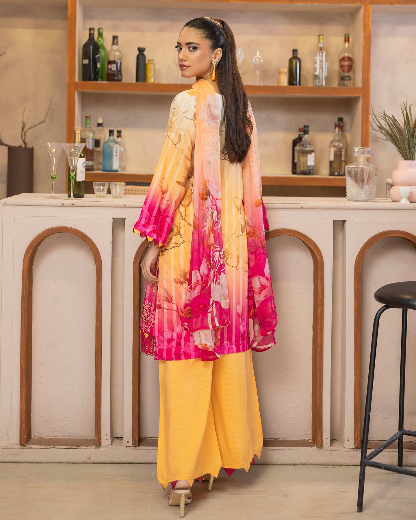 Exclusive Digital Print Viscose Stripe Embroidered Shirt