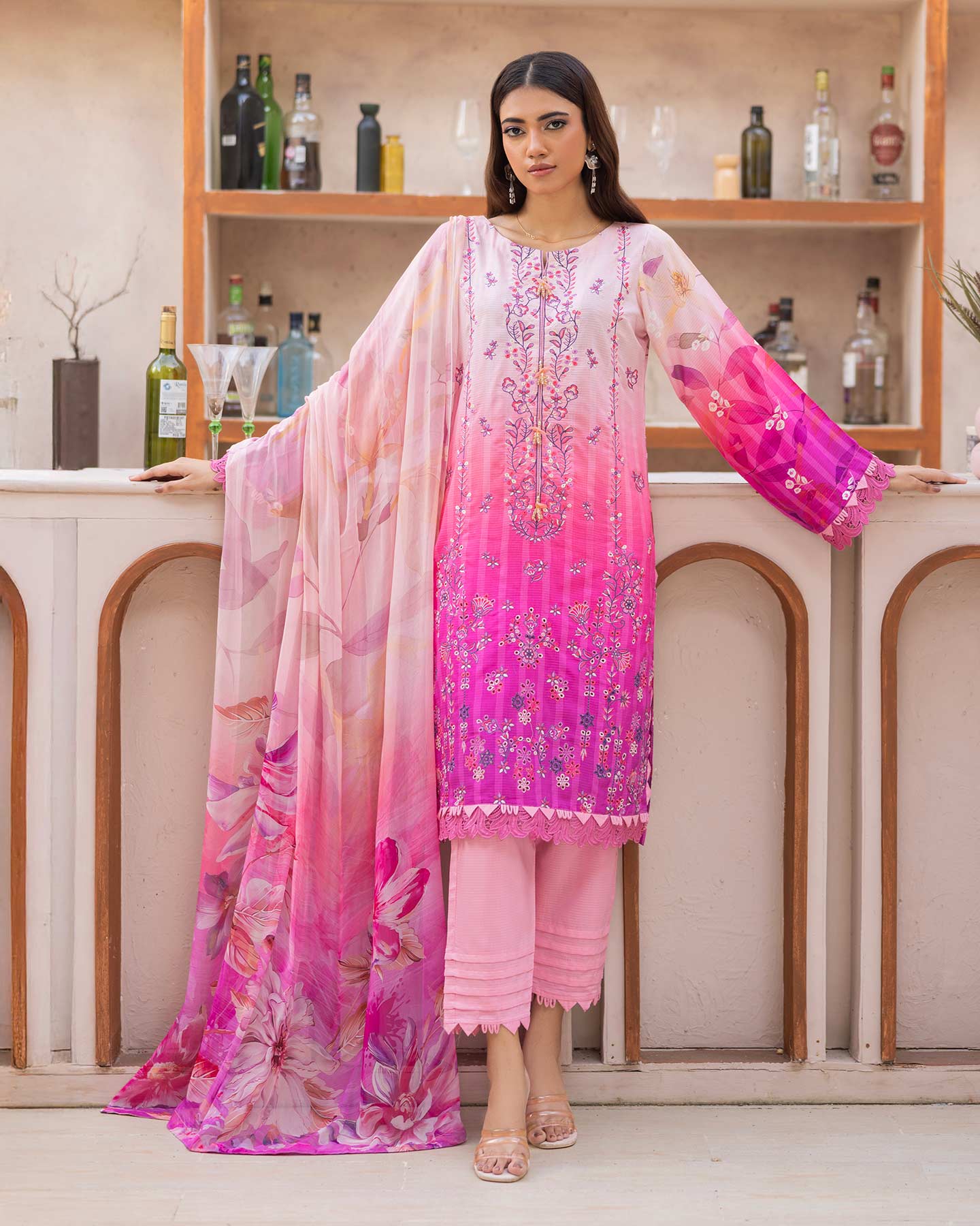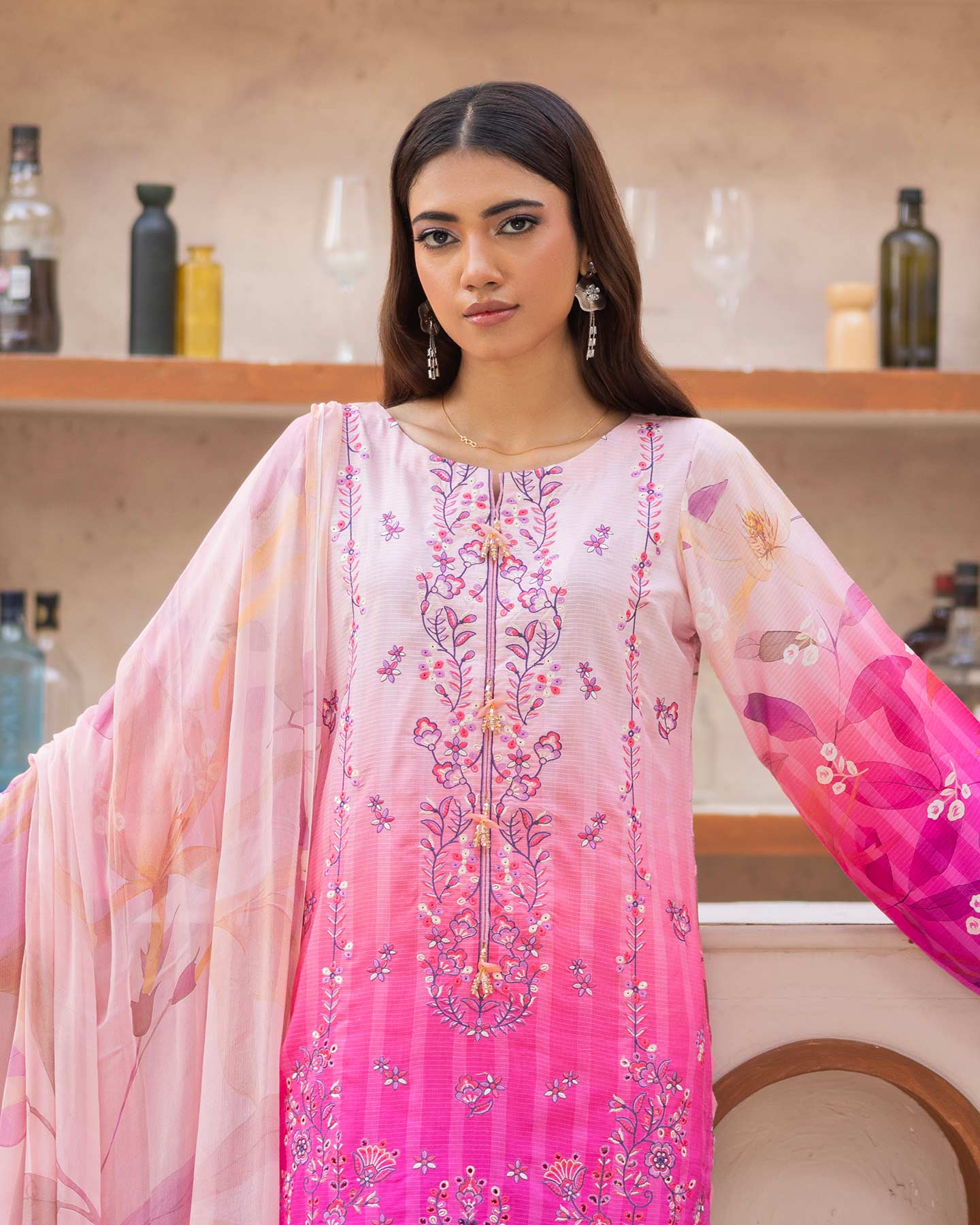 Exclusive Digital Print Viscose Stripe Embroidered  Shirt