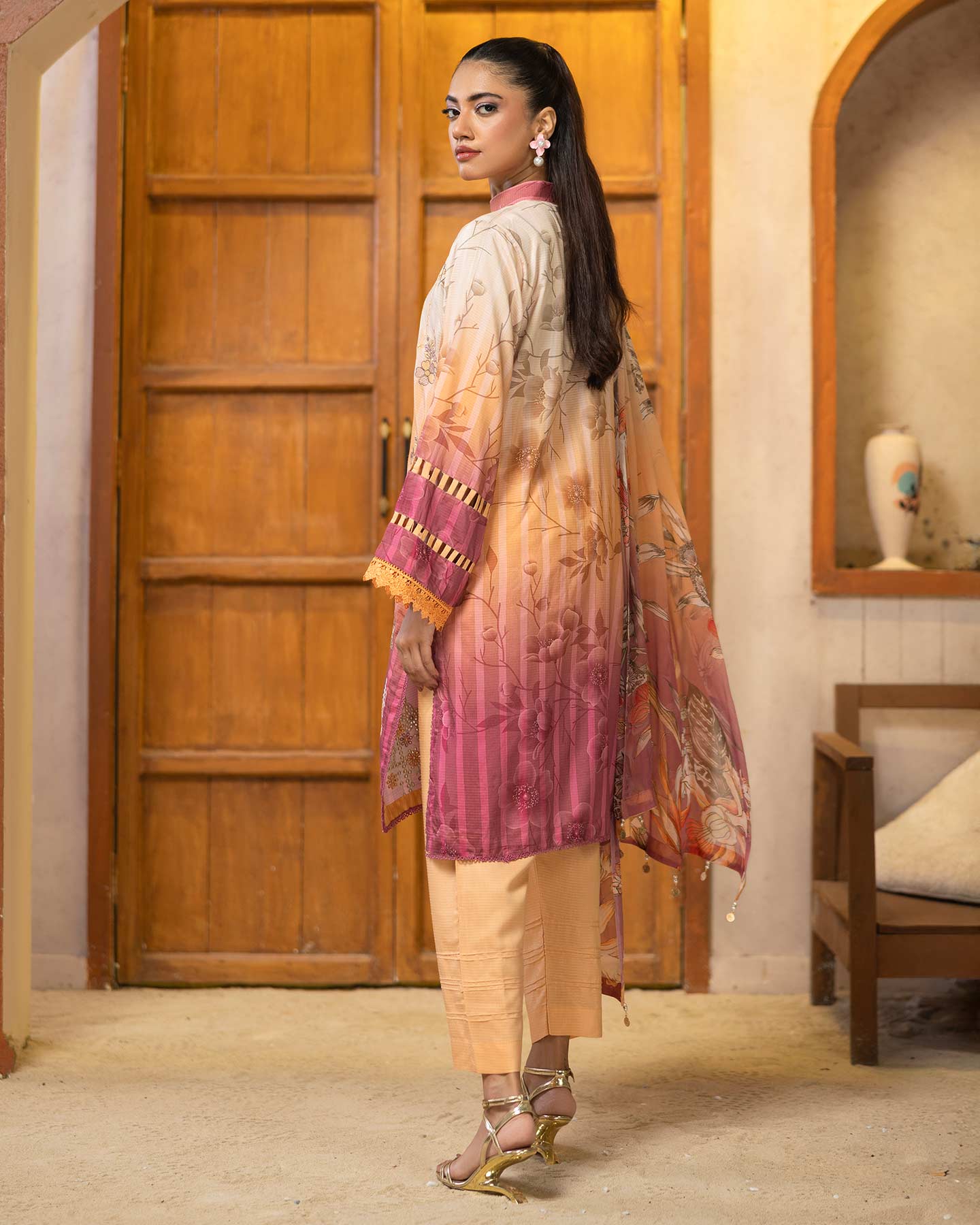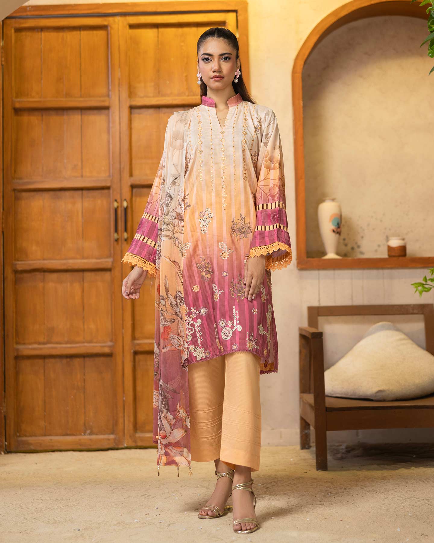 Exclusive Digital Print Viscose Stripe Embroidered Shirt