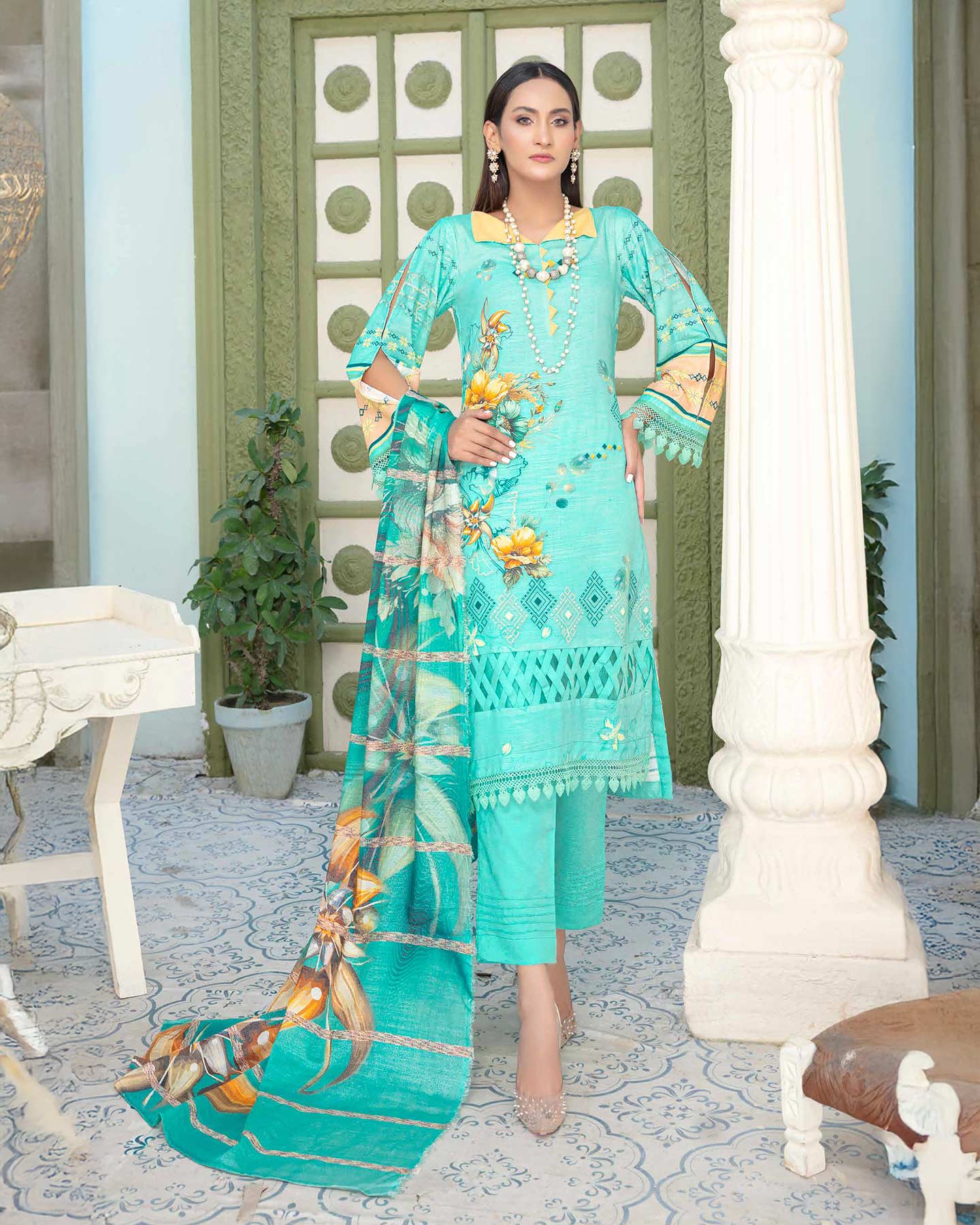 Note : Embroidery shirt have been styled in the image for photography and illustrative purposes. The standard style comes as a long sleeved kameez.