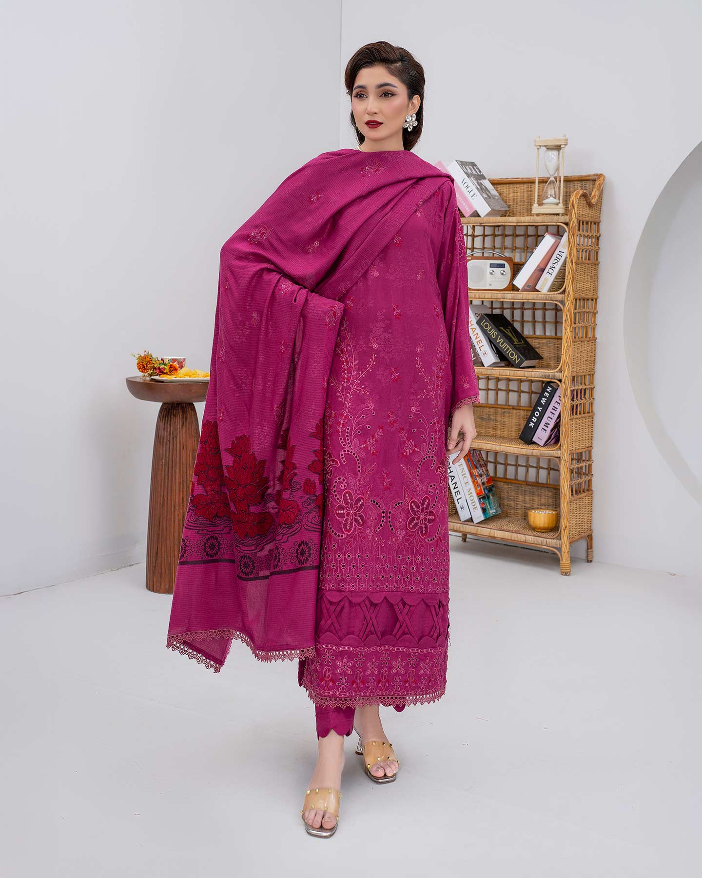 - Fancy Peach Multi Velvet Embroidered Shawl